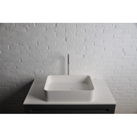 Het matte, fluweelachtige oppervlak van de wastafel voelt prettig aan en is makkelijk schoon te maken en te onderhouden.
