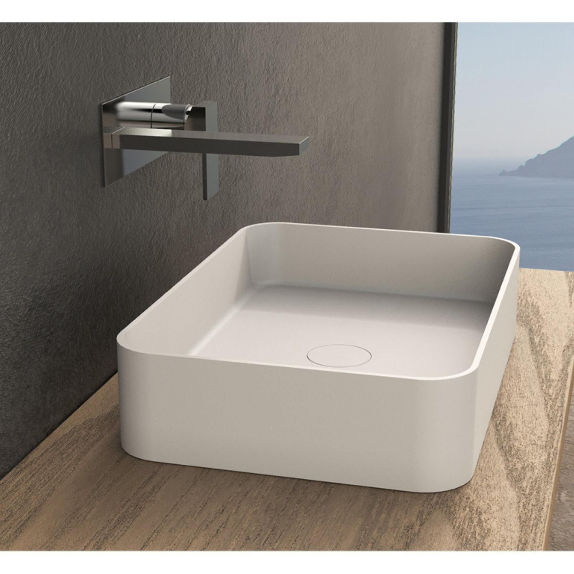 Ideavit Solidthin opbouw wastafel 50x35x12.5cm rechthoek 0 kraangaten 1 wasbak Solid surface wit