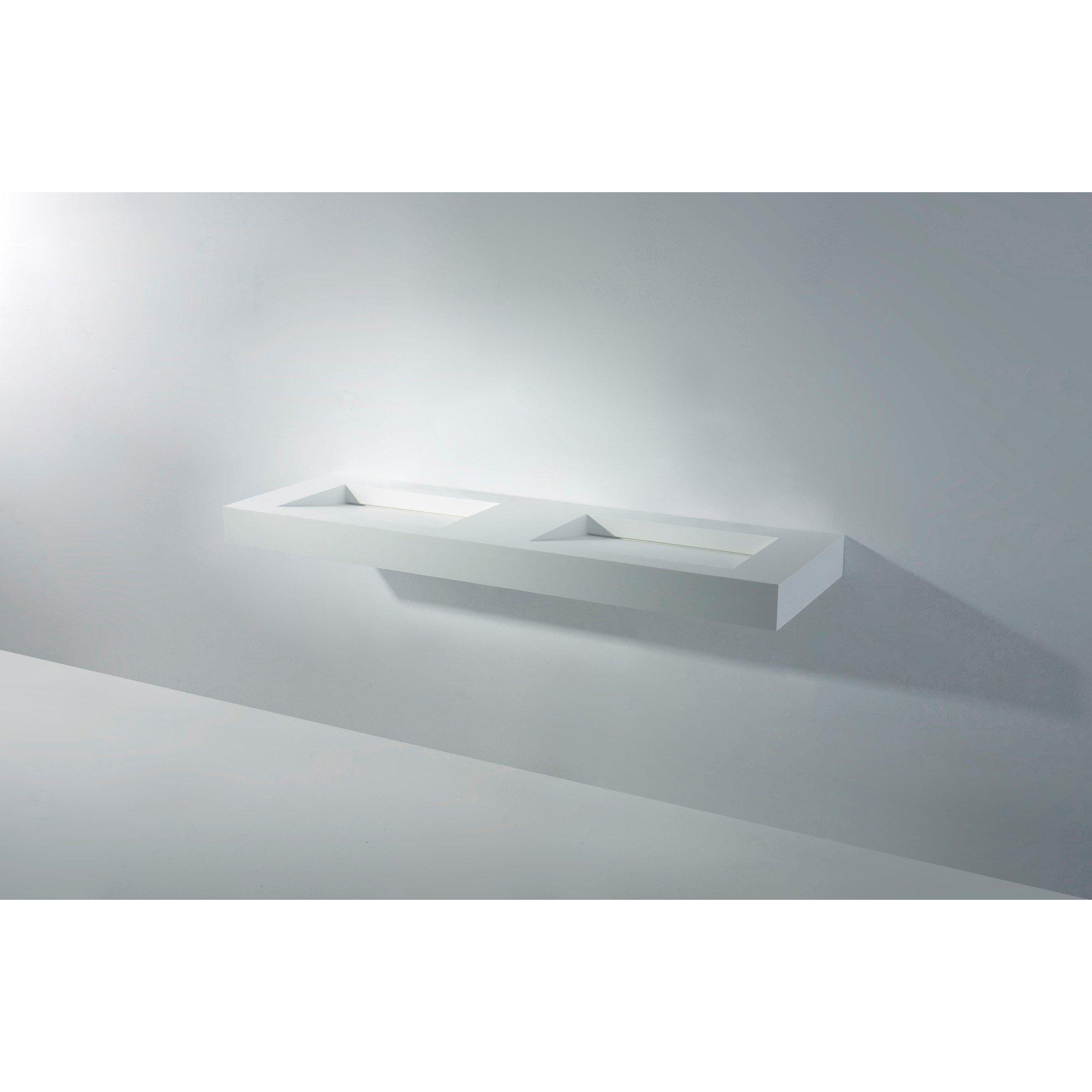 Ideavit Solidsquare Wastafel 150x46x10cm rechthoek 0 kraangaten 2 wasbakken Solid surface wit