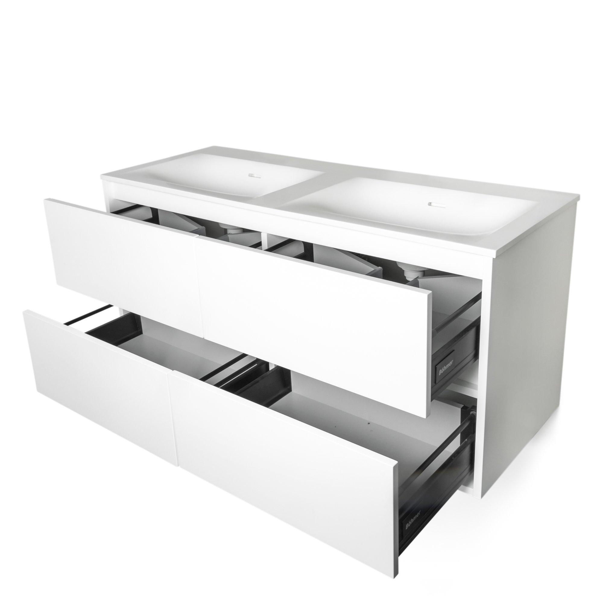 BRAUER Furiosa Meubelwastafel - 120x46x2cm - overloop - 2 wasbakken links rechts - 2 kraangaten - Finestone mat wit