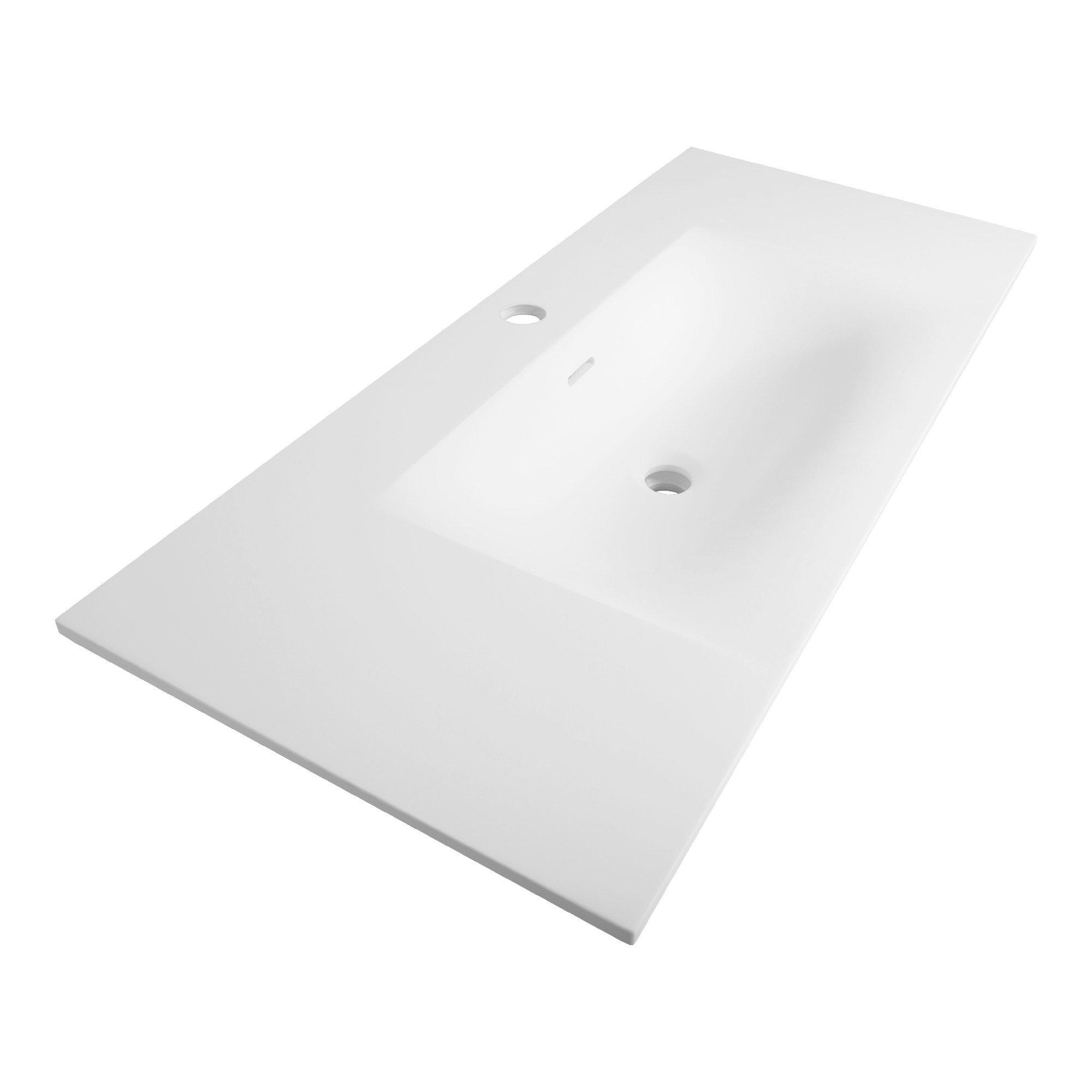BRAUER Glacier wastafel 100x46x2cm - 1 wasbak - 1 kraangat- fine stone - mat wit