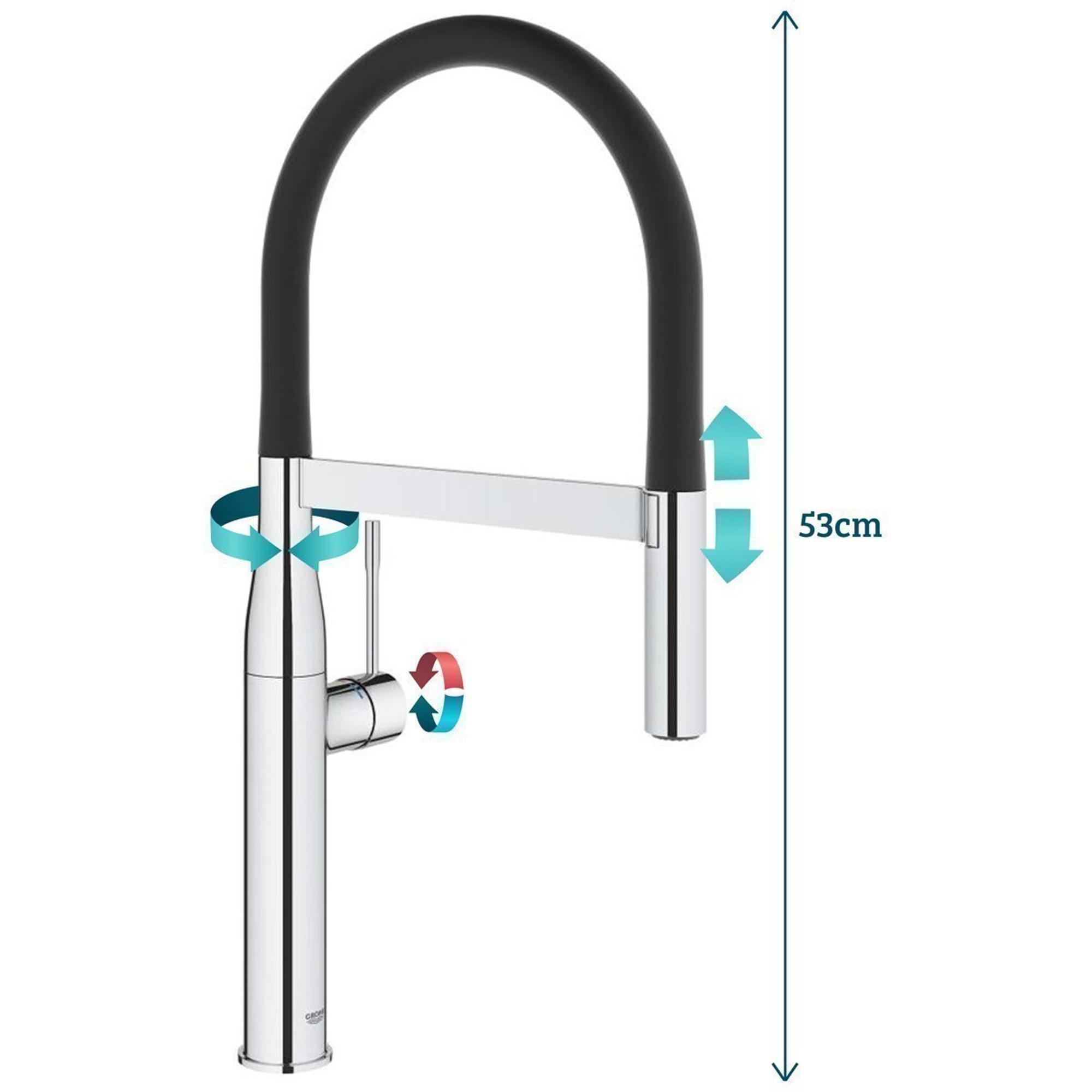GROHE essence new Keukenkraan - hoog - uittrekbare uitloop - 2 straalsoorten - met profesionele handdouche - chroom