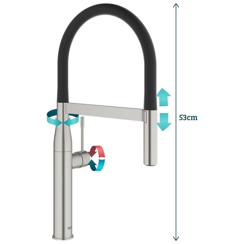 GROHE essence new Keukenkraan - hoog - uittrekbare uitloop - 2 straalsoorten - met profesionele handdouche - supersteel geborsteld