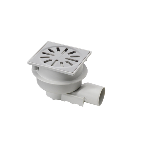 Aquaberg ABS vloerput met RVS rooster met onderuitloop Ø50mm en zijuitloop Ø40mm 100x100mm met PPC reukafsluiter reukslot 37mm