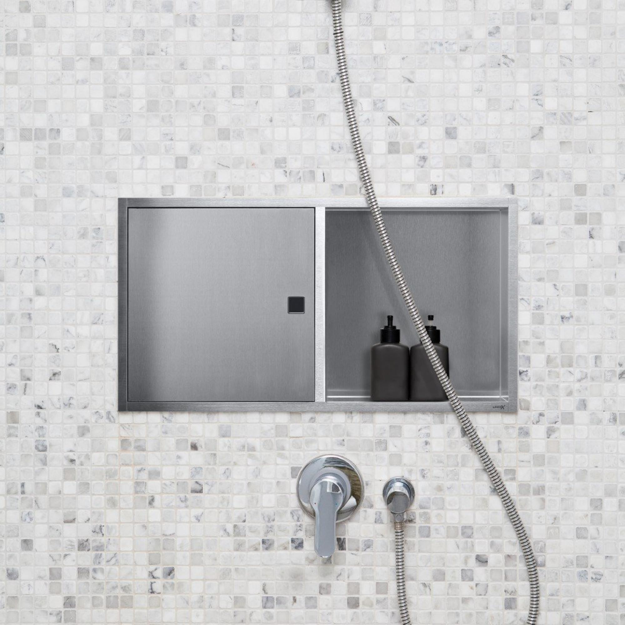 De Looox BoX nis straalt stijl en klasse uit met zijn moderne ontwerp en roestvrijstalen afwerking. De strakke lijnen en minimalistische uitstraling passen perfect bij een eigentijdse badkamerinrichting. Deze nis voegt niet alleen functionaliteit toe, maar dient ook als een decoratief element dat de ruimte verrijkt.