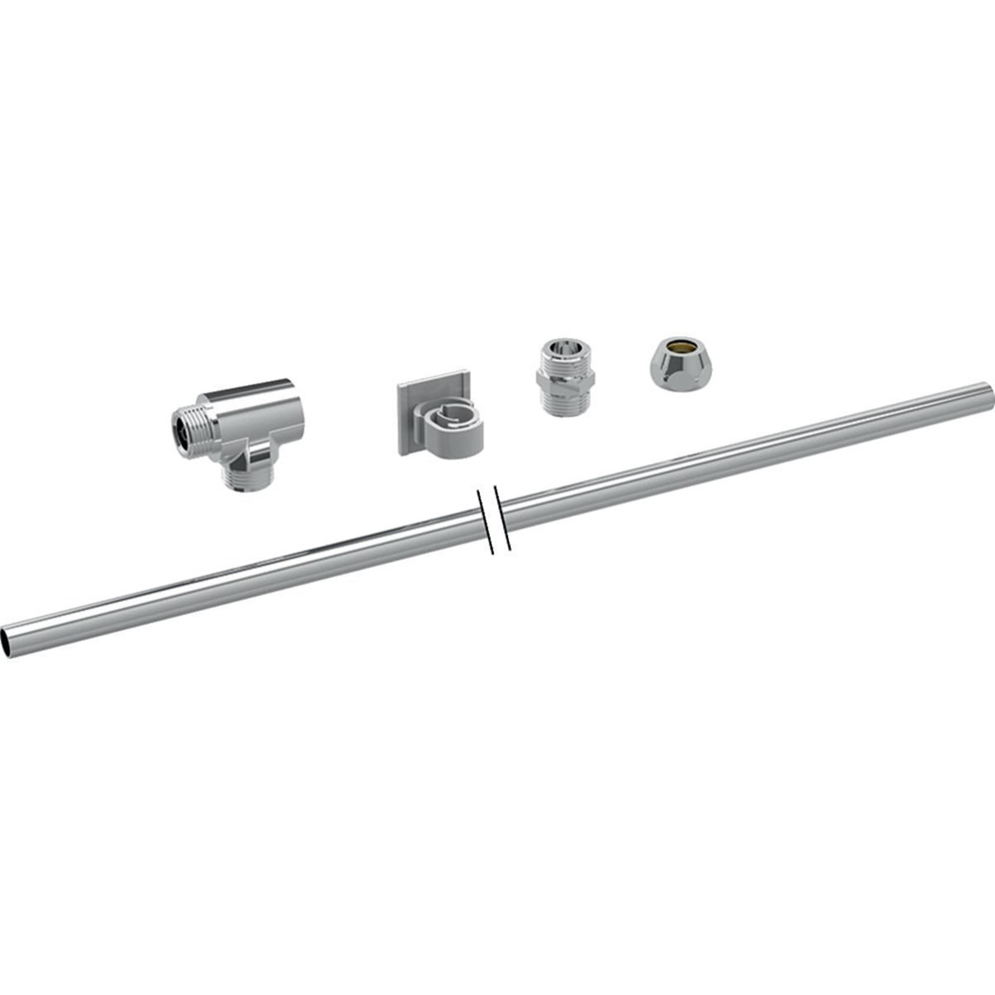 De set bevat een verchroomd T-stuk met buitendraad G 3/8" en een rechte koperen buis van 0,5 meter, wat zorgt voor een duurzame en betrouwbare aansluiting. Het meegeleverde bevestigings- en aansluitmateriaal maakt de installatie eenvoudig en probleemloos.