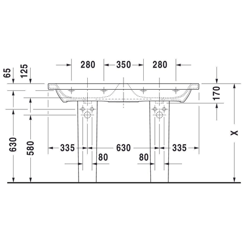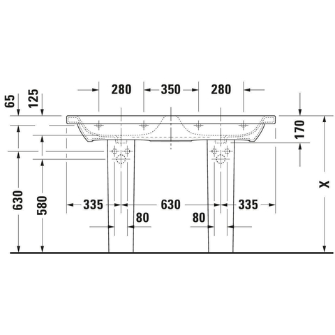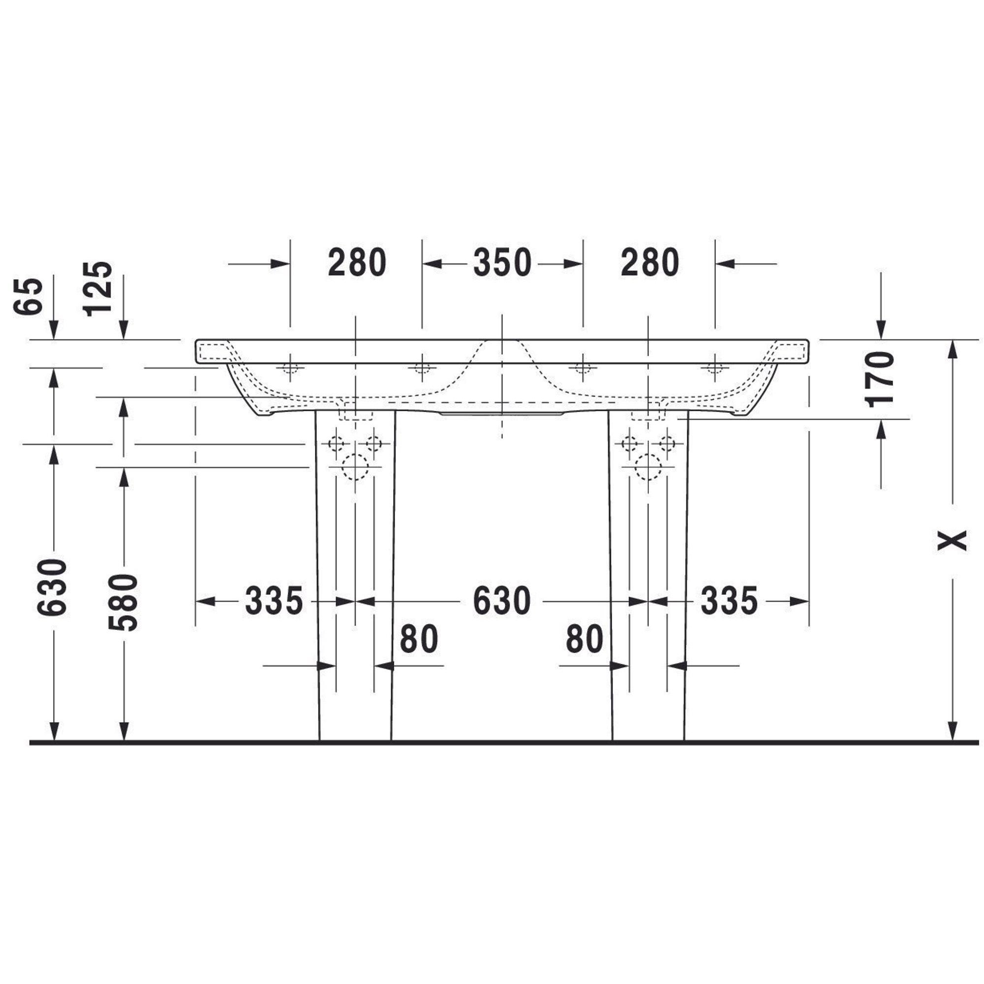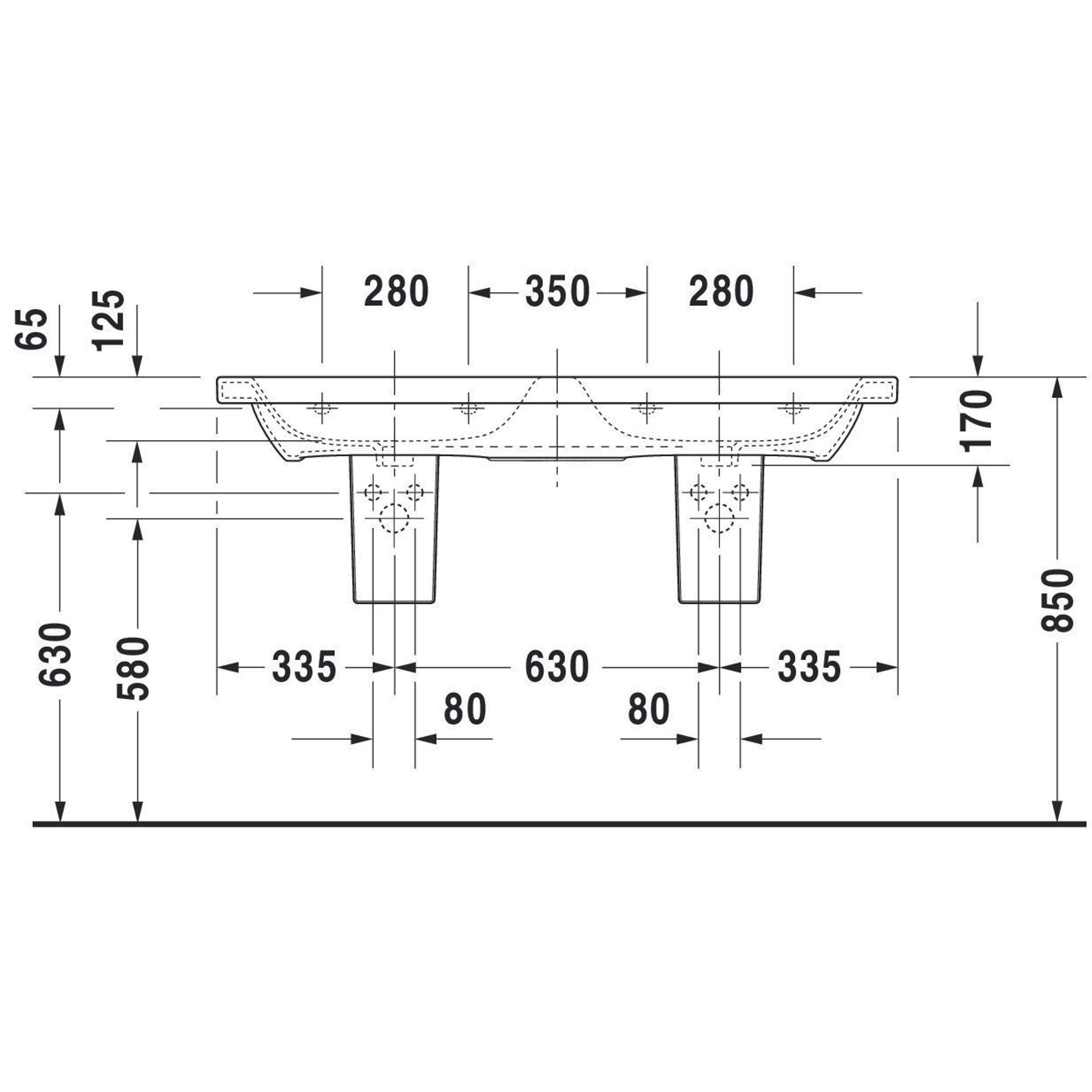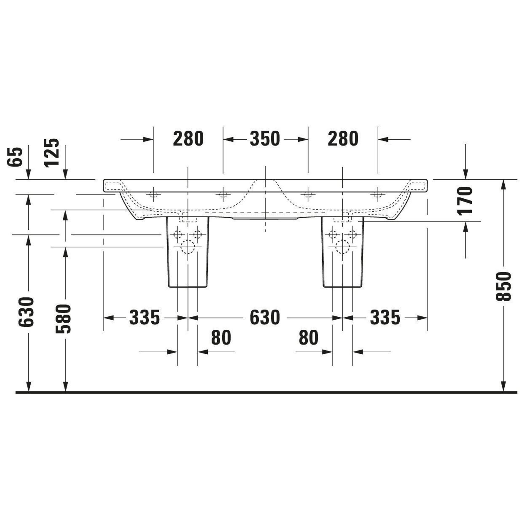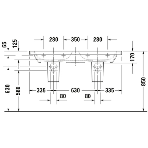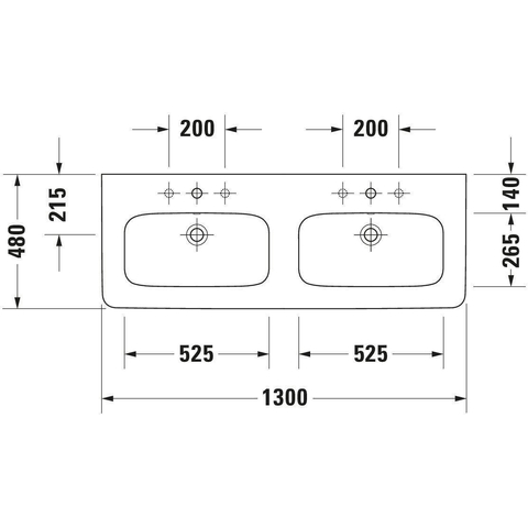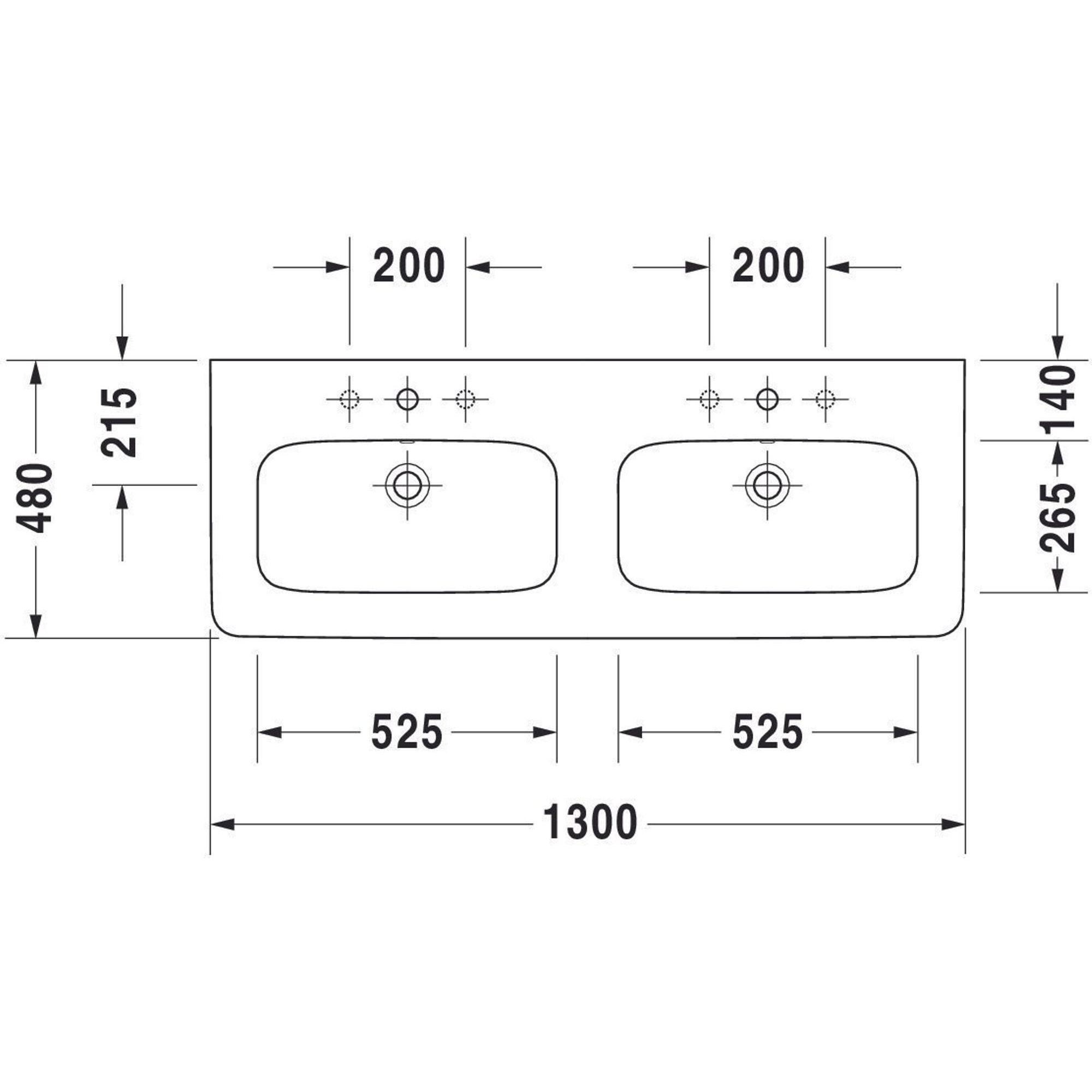 Duravit Durastyle dubbele meubelwastafel 130x48 2 kraangaten plus overloop wit