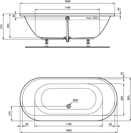 Ideal Standard Connect Air inbouwbad duo 180x80cm acryl ovaal wit zonder potenset