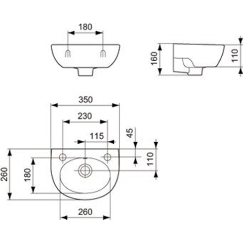 Ideal Standard Simplicity handwasbakje 350x260x160 mm wandmontage porselein wit met kraangat rechts
