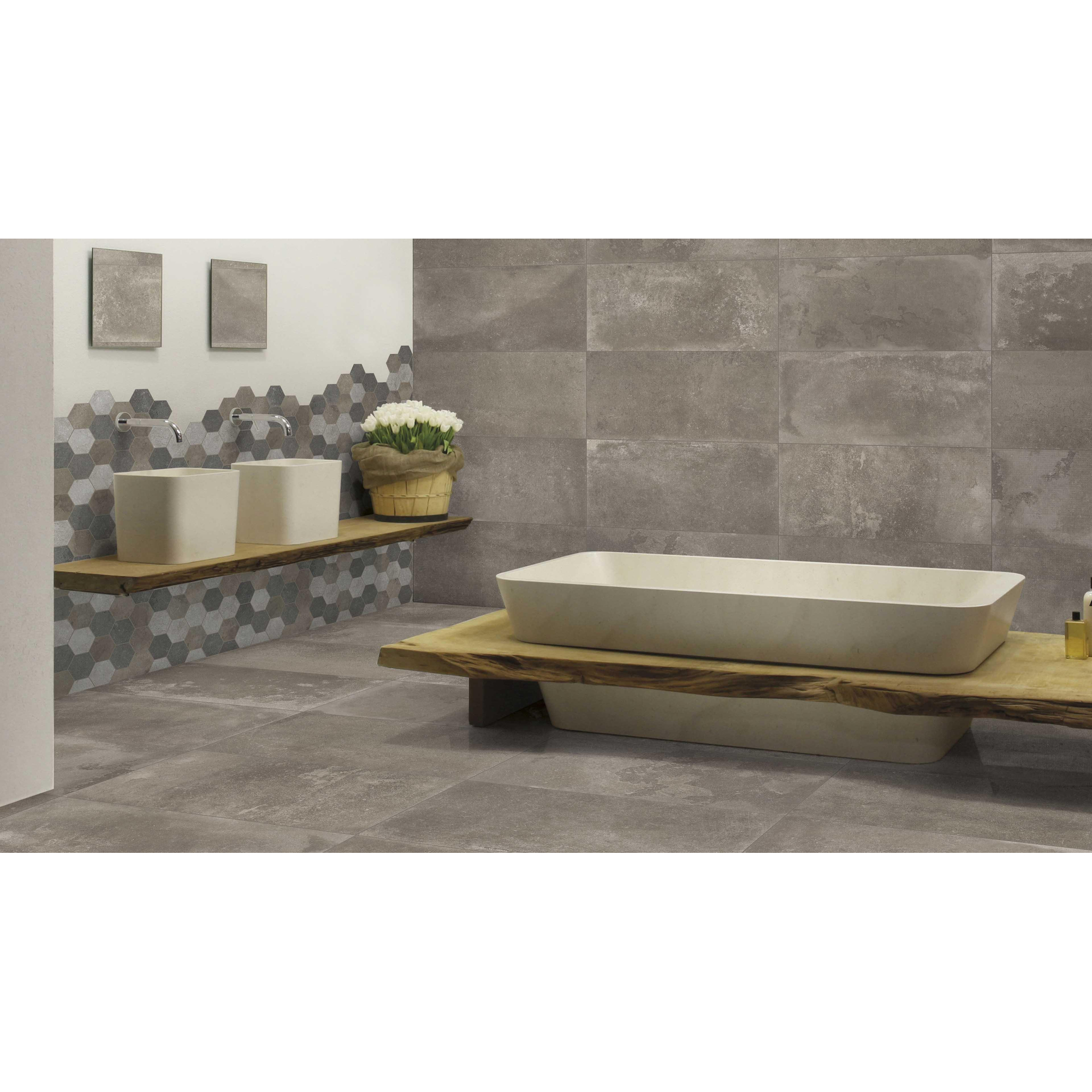 De veelzijdigheid van de JOS. Reused tegel maakt het geschikt voor diverse toepassingen, van vloeren en wanden in badkamers en keukens tot andere ruimtes in huis. De Mud kleur past perfect bij verschillende interieurstijlen, van modern tot klassiek, en biedt eindeloze mogelijkheden voor creatieve ontwerpen en combinaties.