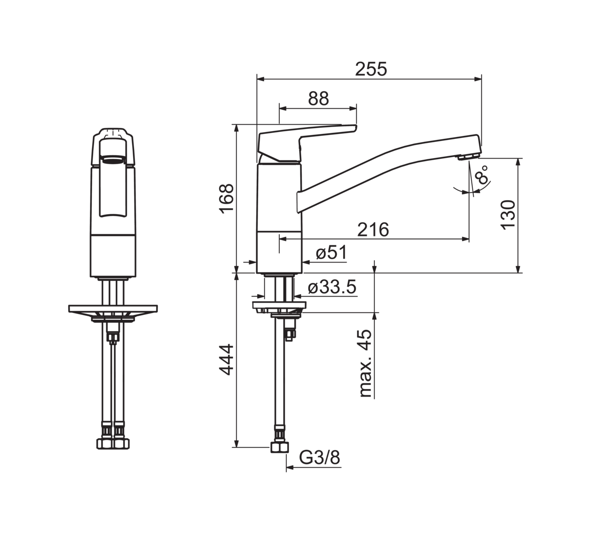 Hansa Hansapolo keukenkraan Eco met lage uitloop 21.6cm chroom