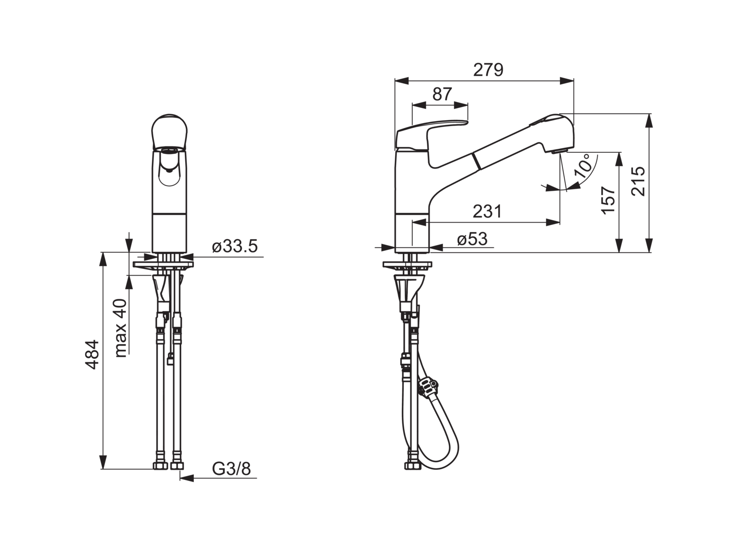 Hansa Hansapinto keukenkraan met uittrekbare handdouche 2-stralig uitloop 120° draaibaar 23.1cm chroom