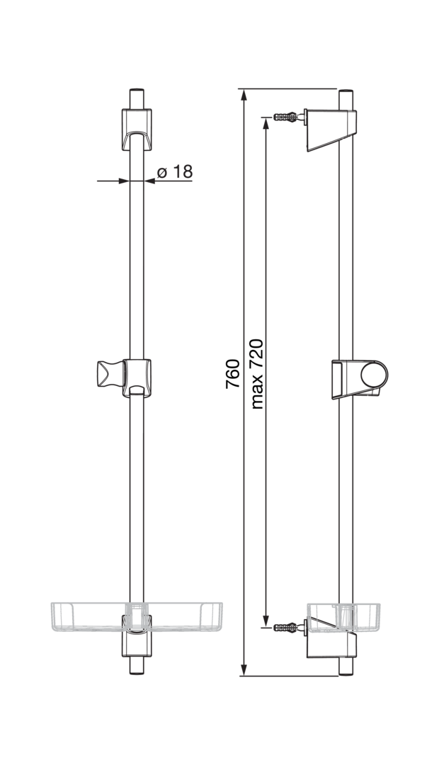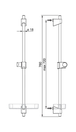 Hansa Hansabasicjet glijstang met houder verstelbaar met zeepschaal 72cm chroom