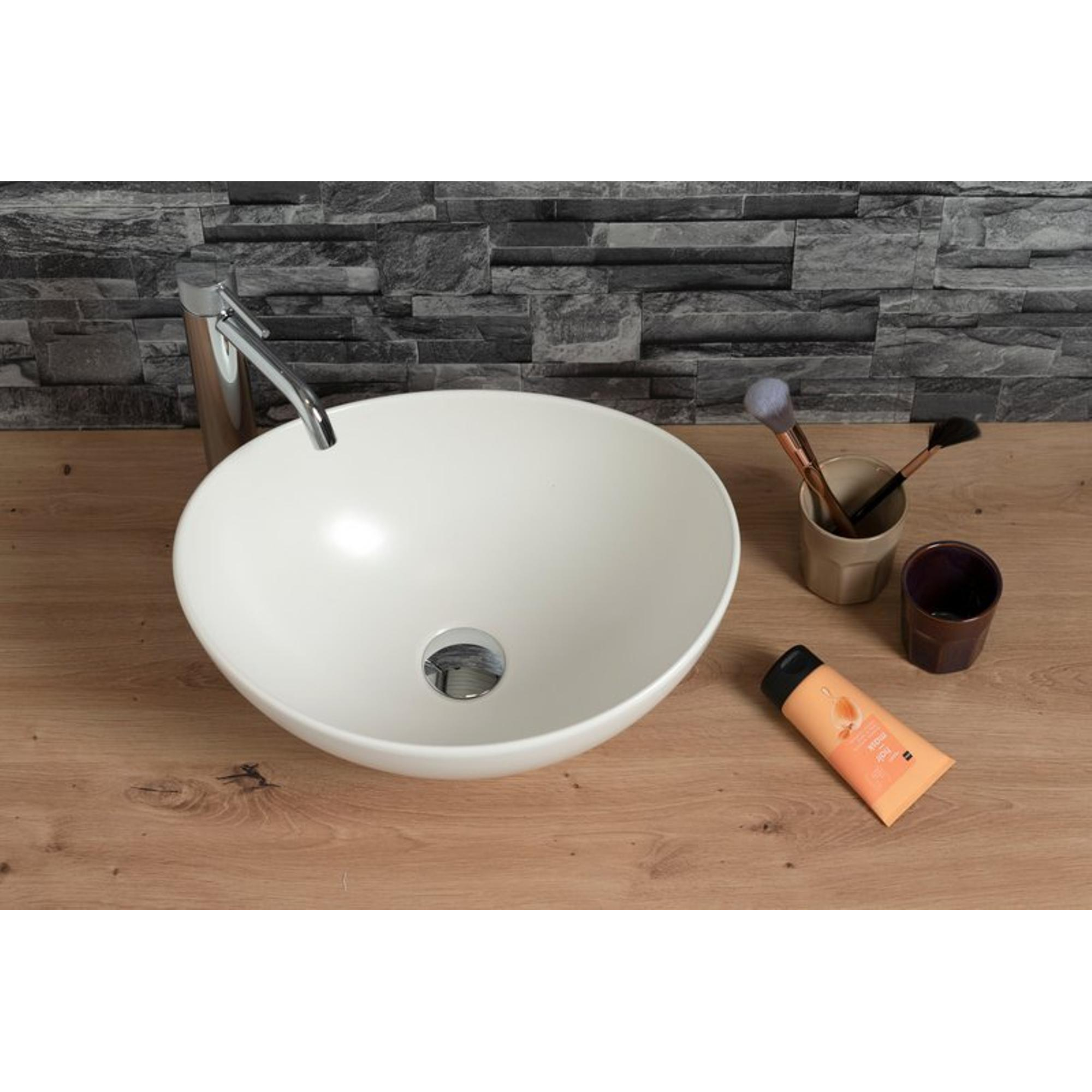 De Plieger Scale keramische opbouw waskom straalt pure luxe uit. Het ovale ontwerp en de mat witte afwerking creëren een gevoel van weelde en verfijning in je badkamer. Deze waskom is een pronkstuk dat elke badkamer transformeert tot een elegant toevluchtsoord.