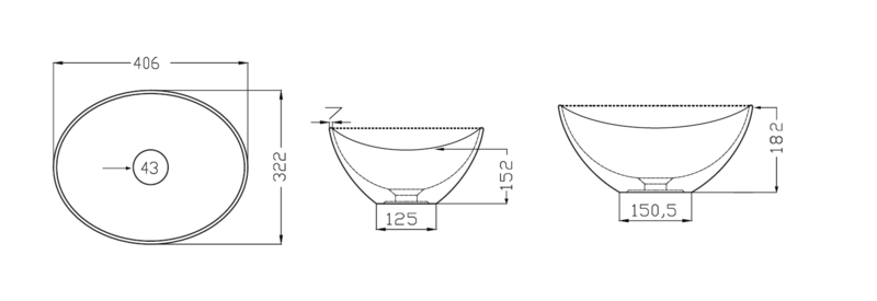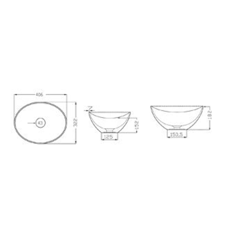 Plieger Scale keramische opbouw waskom ovaal 40.6x32.2x18.2cm zwart/wit