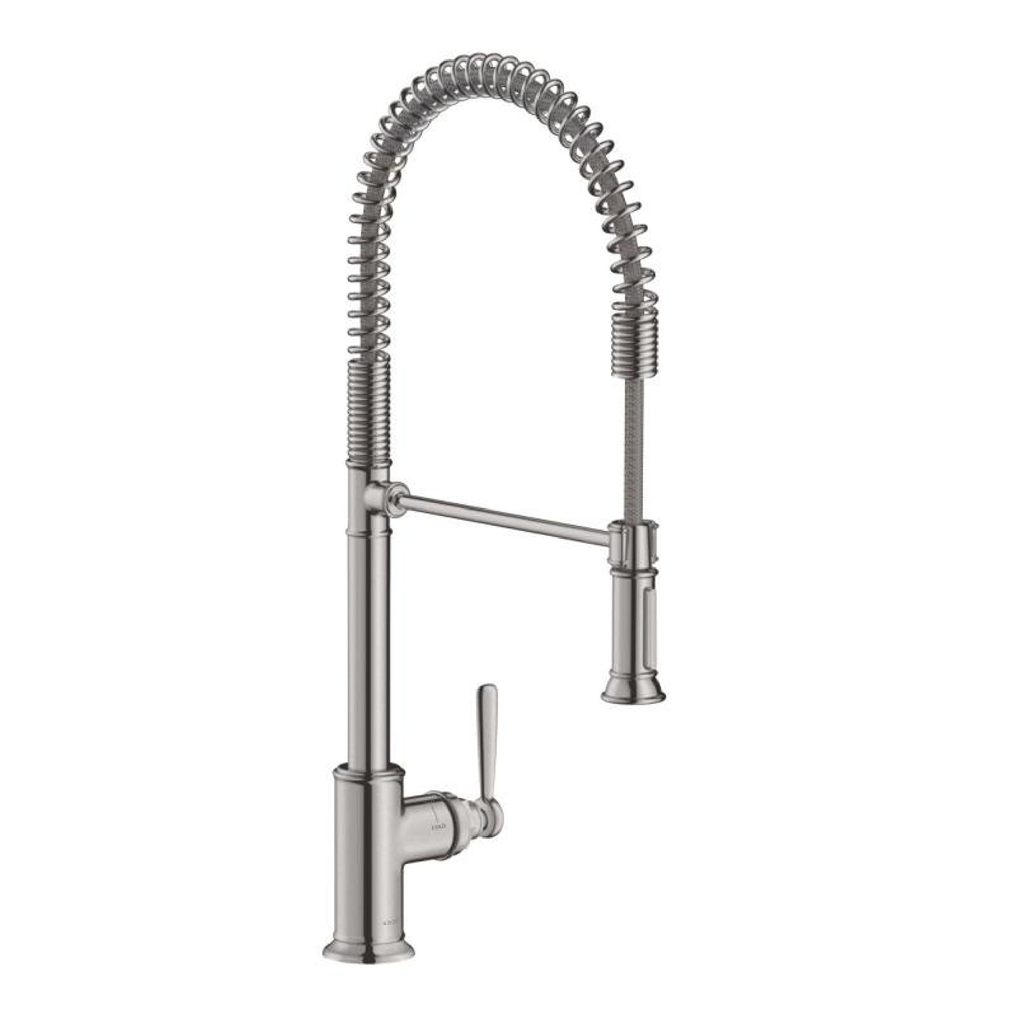 De AXOR Montreux keukenkraan Semi-Prof met flexibele uitloop in RVS-look is een prachtig staaltje vakmanschap dat functionaliteit combineert met elegantie. Deze keukenkraan is ontworpen met oog voor detail en biedt een perfecte mix van stijl en gebruiksgemak. Met zijn semi-professionele uitstraling en flexibele uitloop is deze kraan een aanwinst voor elke keuken.