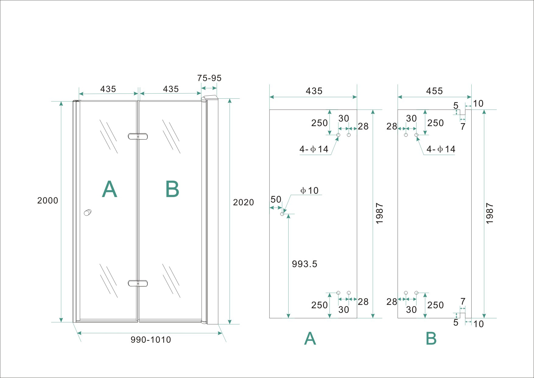 Wiesbaden Maki nisdeur vouwbaar rechts 1000 x 2000 x 8 mm nano helder glas/chroom