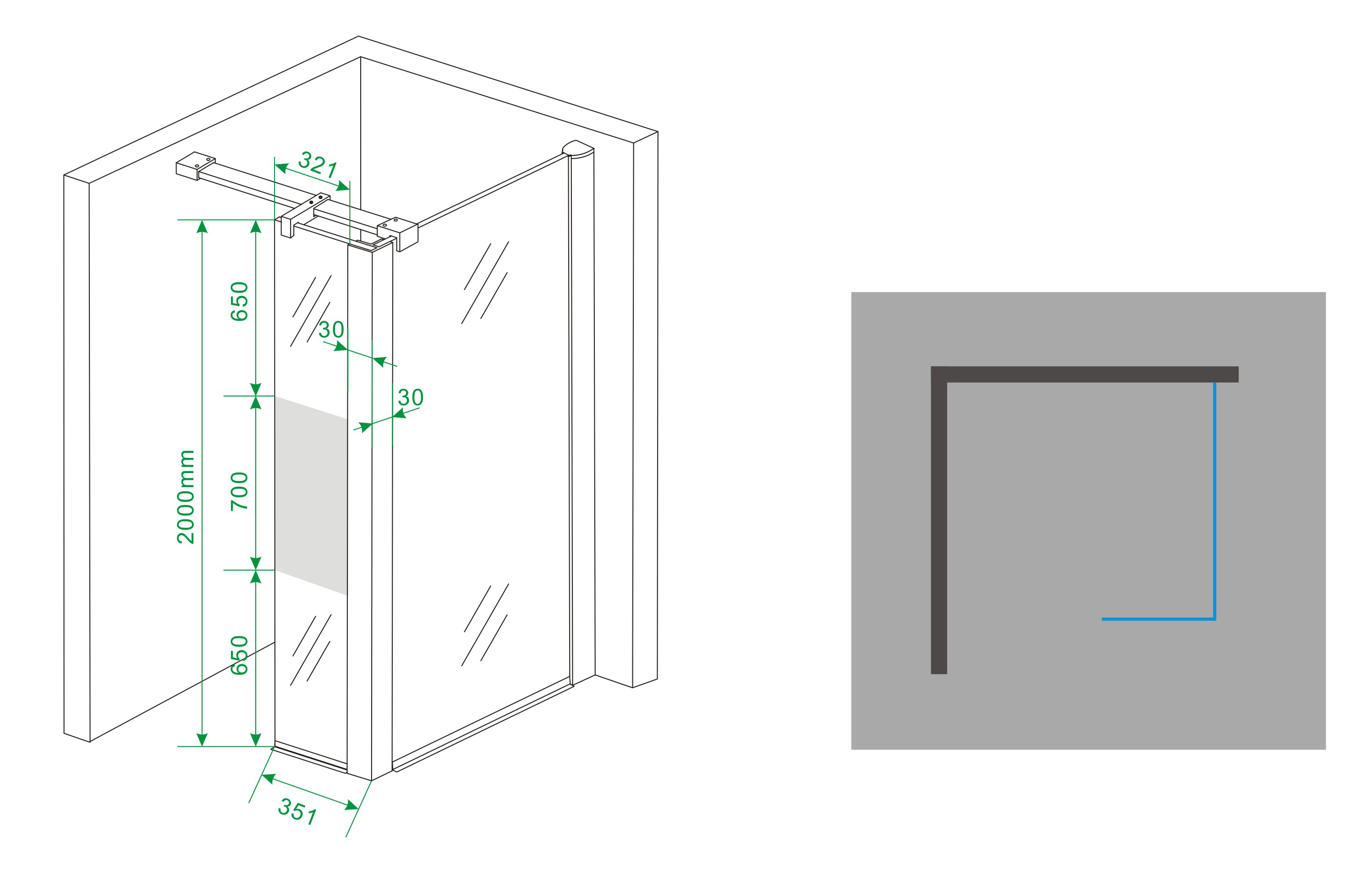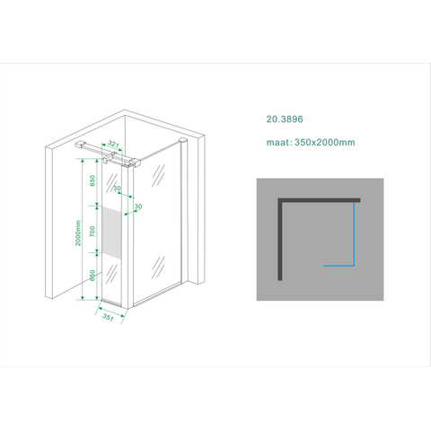 Deze wand wordt gemonteerd op de inloopdouches van 1cm dik.