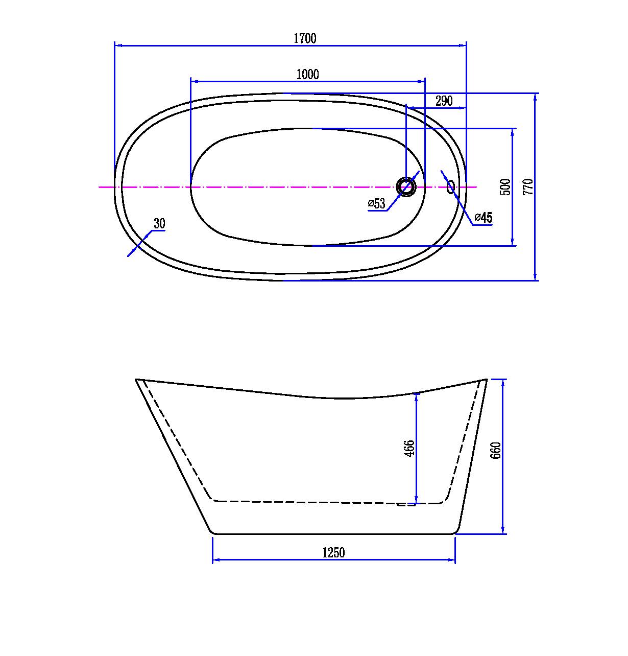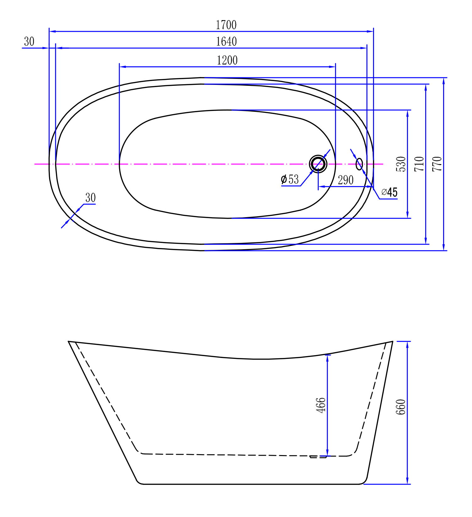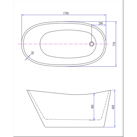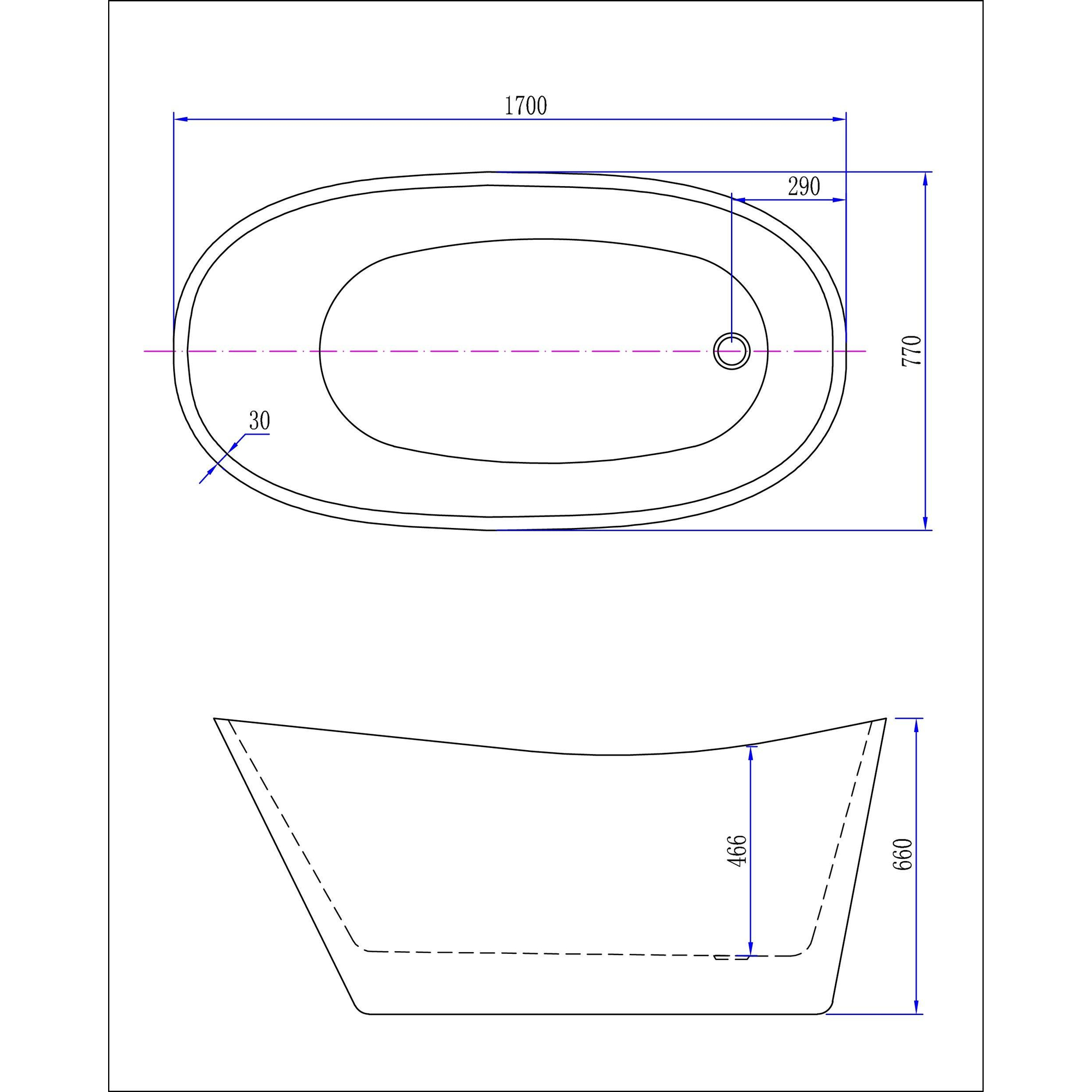 Wiesbaden Trapeze vrijstaand ligbad 170x77cm acryl glans wit met waste glans wit