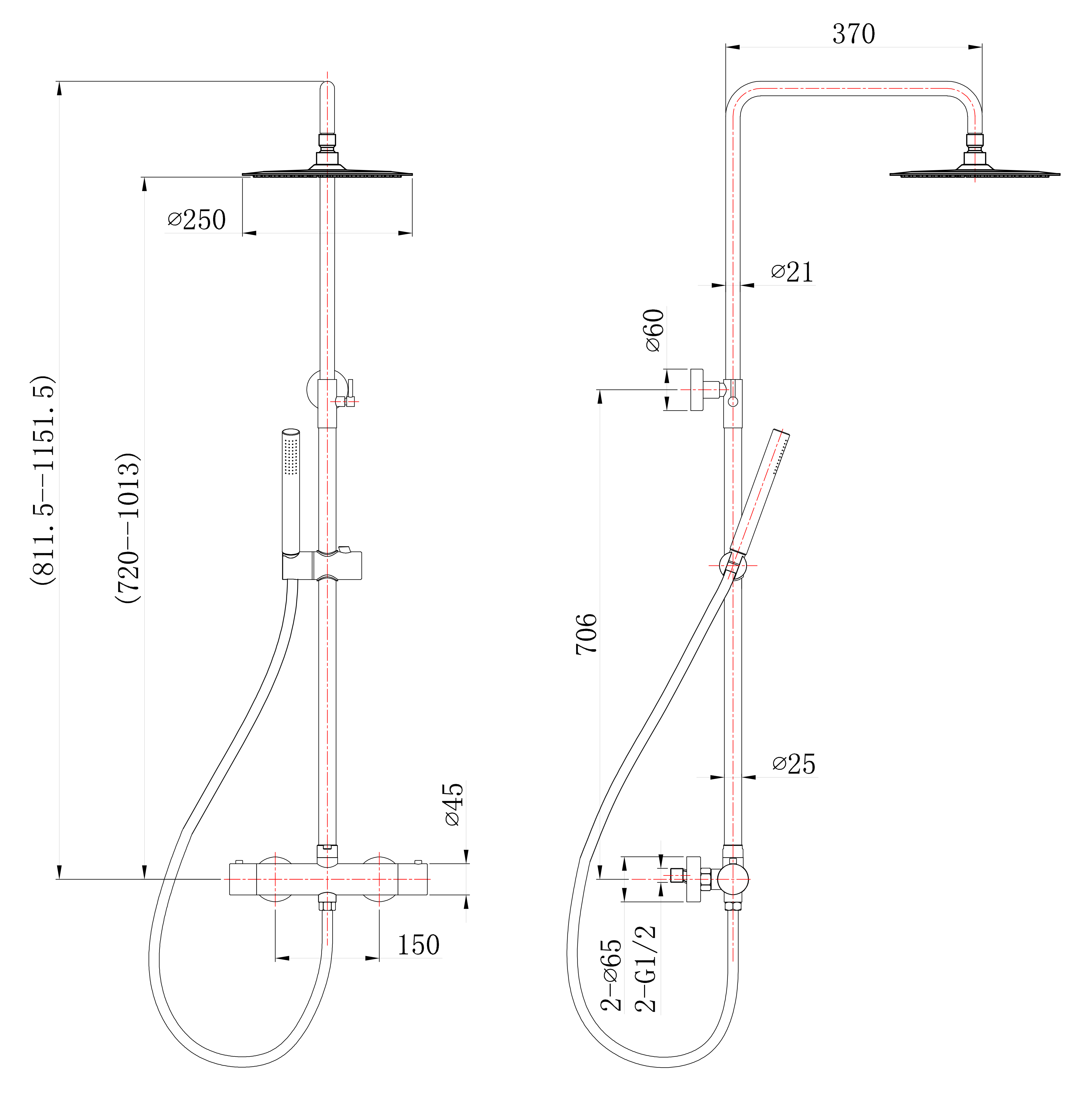 | Breedte douchekop | 25 cm |