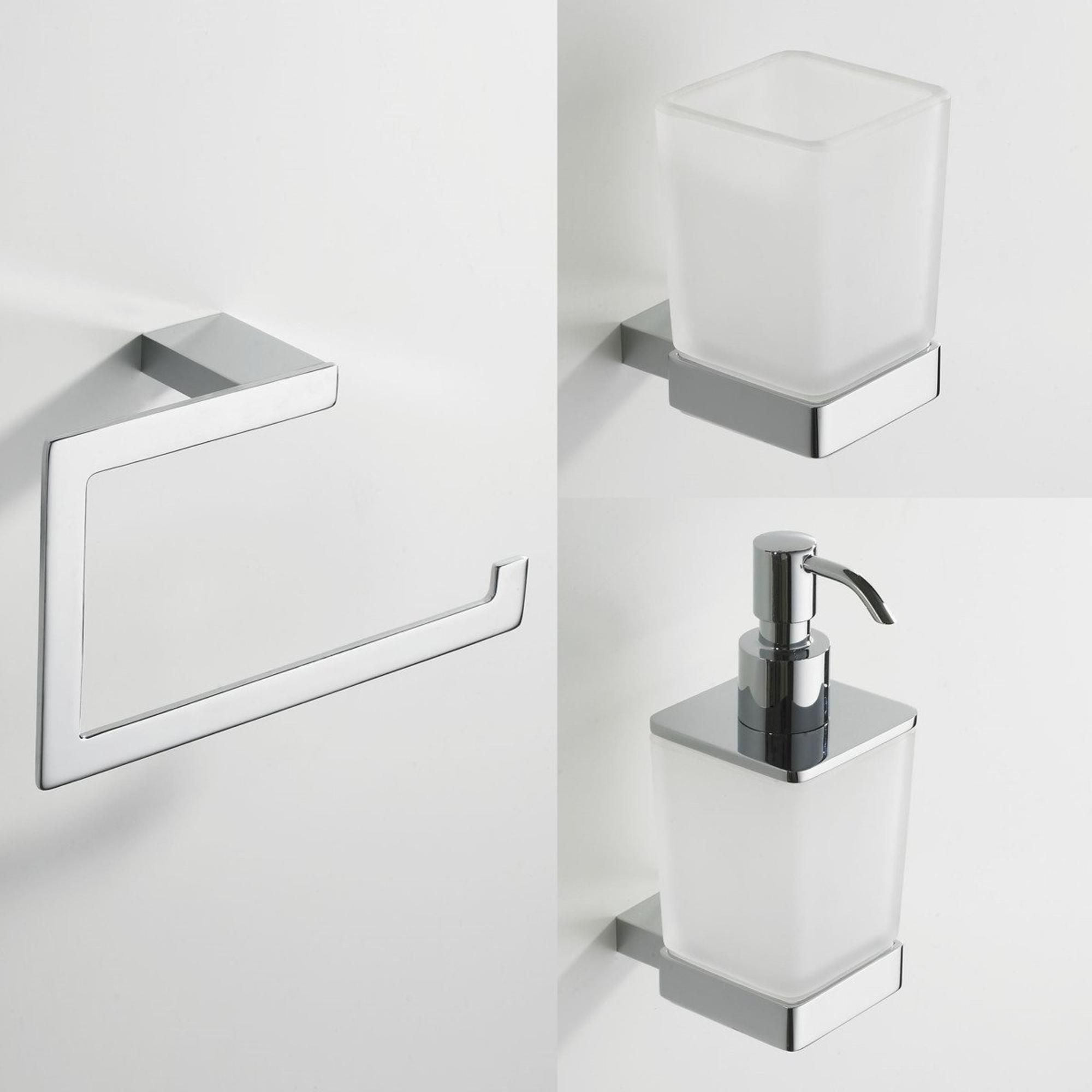 - Inhoud set: Handdoekring, toiletrolhouder, haakjes