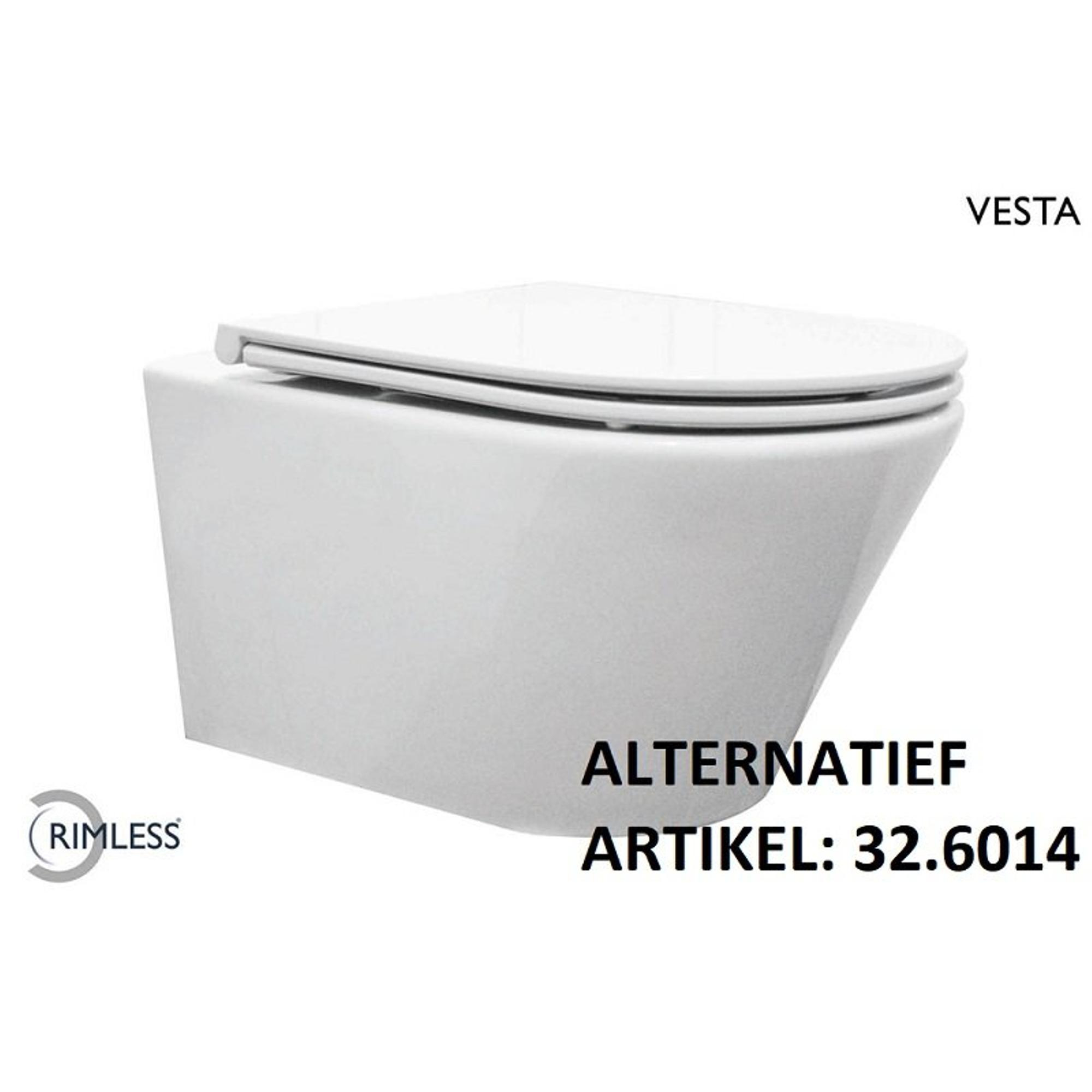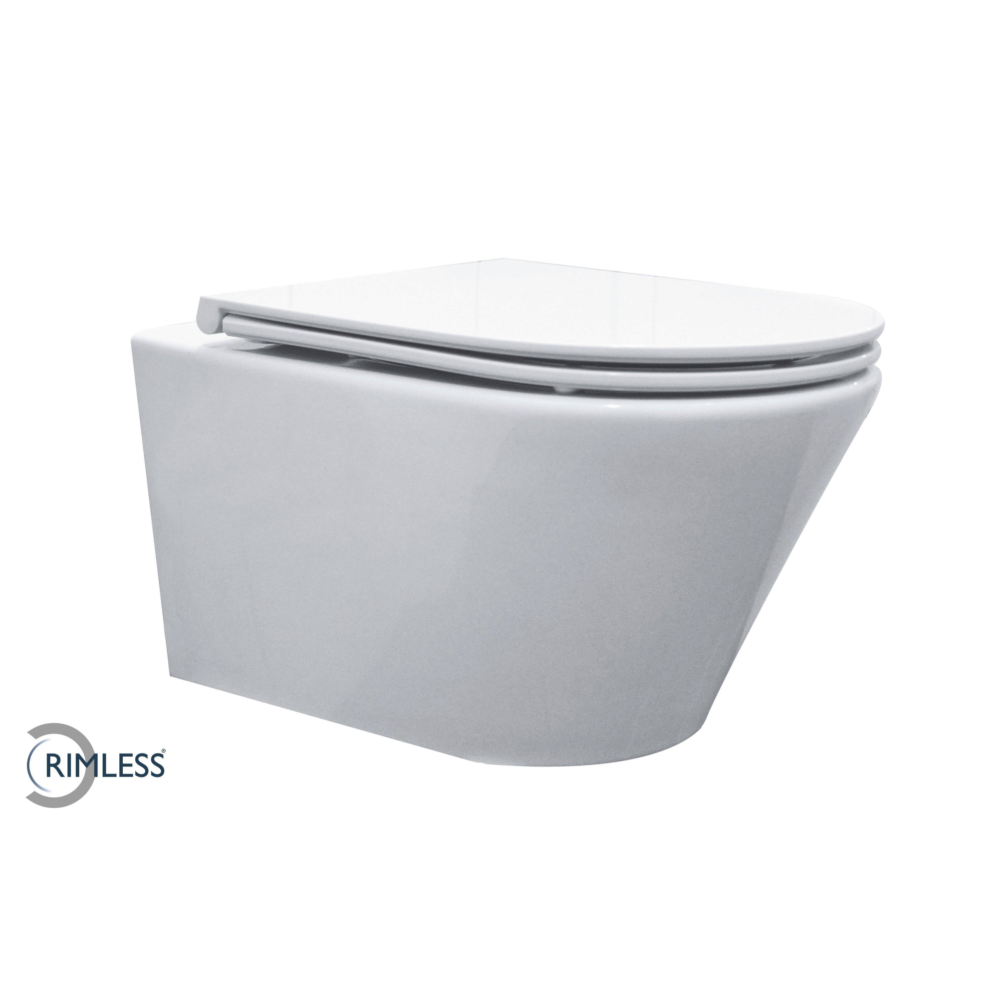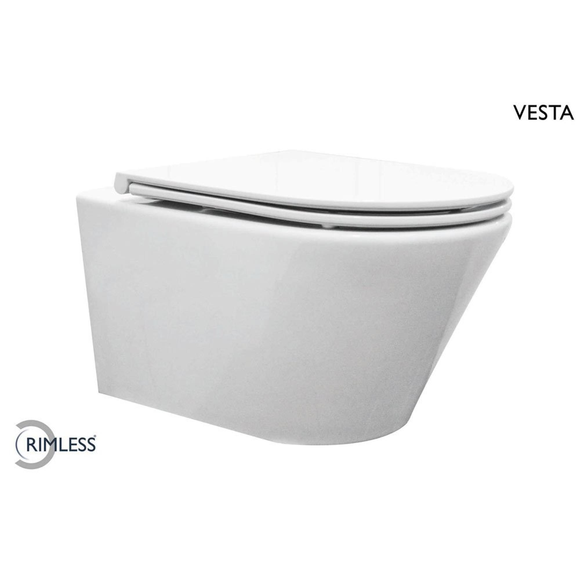 Wiesbaden Vesta wandcloset rimless met Flatline toiletzitting softclose en quick release glans wit