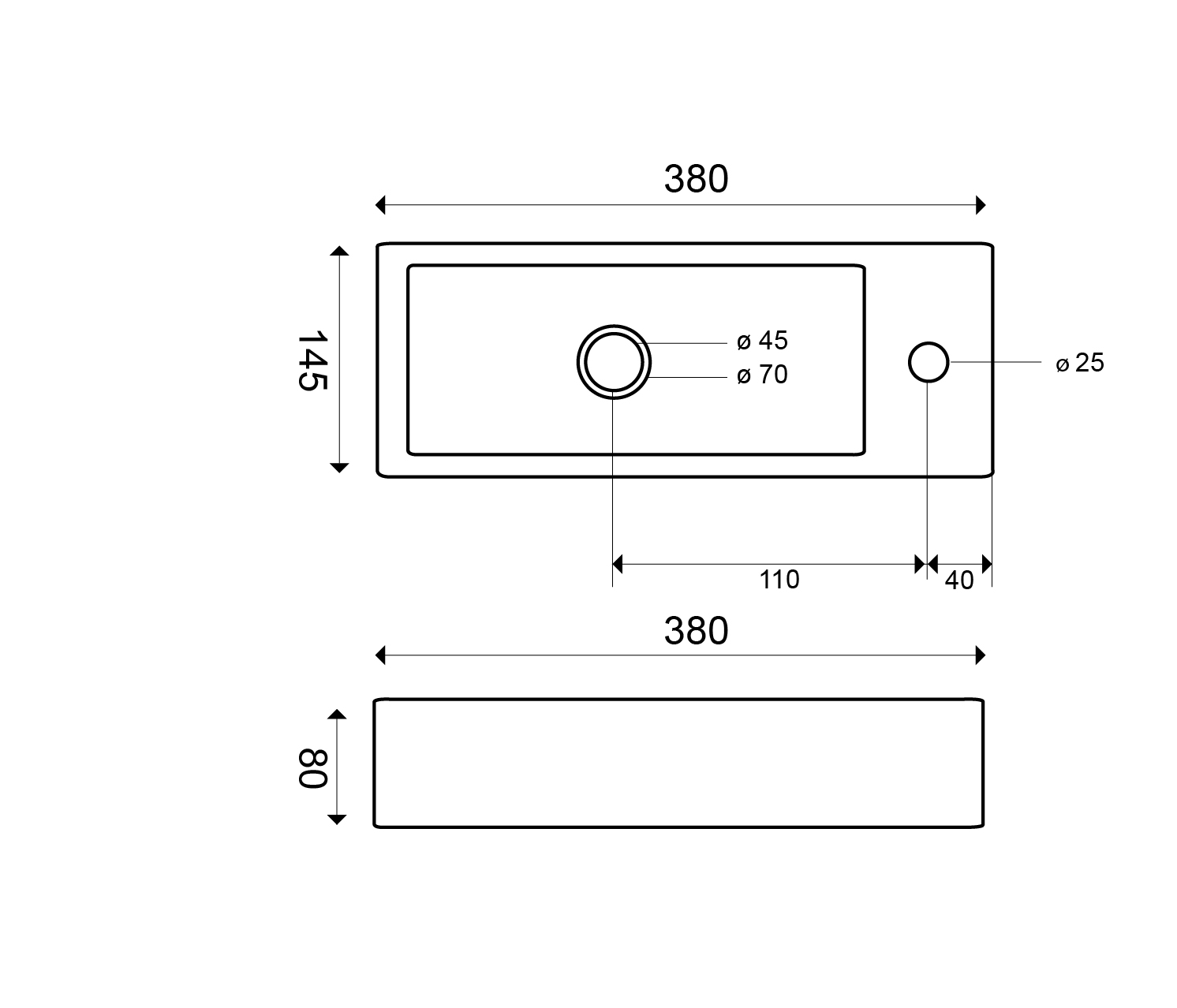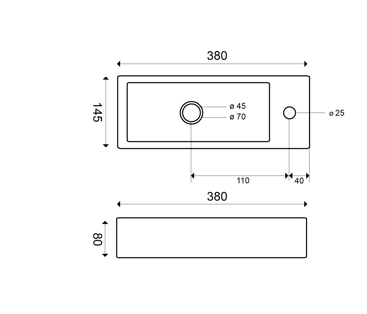 Compact en Praktisch OntwerpMet zijn afmetingen van 380 x 140 x 80 mm is deze mini fontein ideaal voor kleinere ruimtes. De fontein heeft een kraangat aan de rechterzijde, wat zorgt voor gemakkelijke toegang en efficiënt gebruik van de ruimte. Het ontbreken van een overloop draagt bij aan het minimalistische design, waardoor het een strakke en moderne uitstraling heeft.