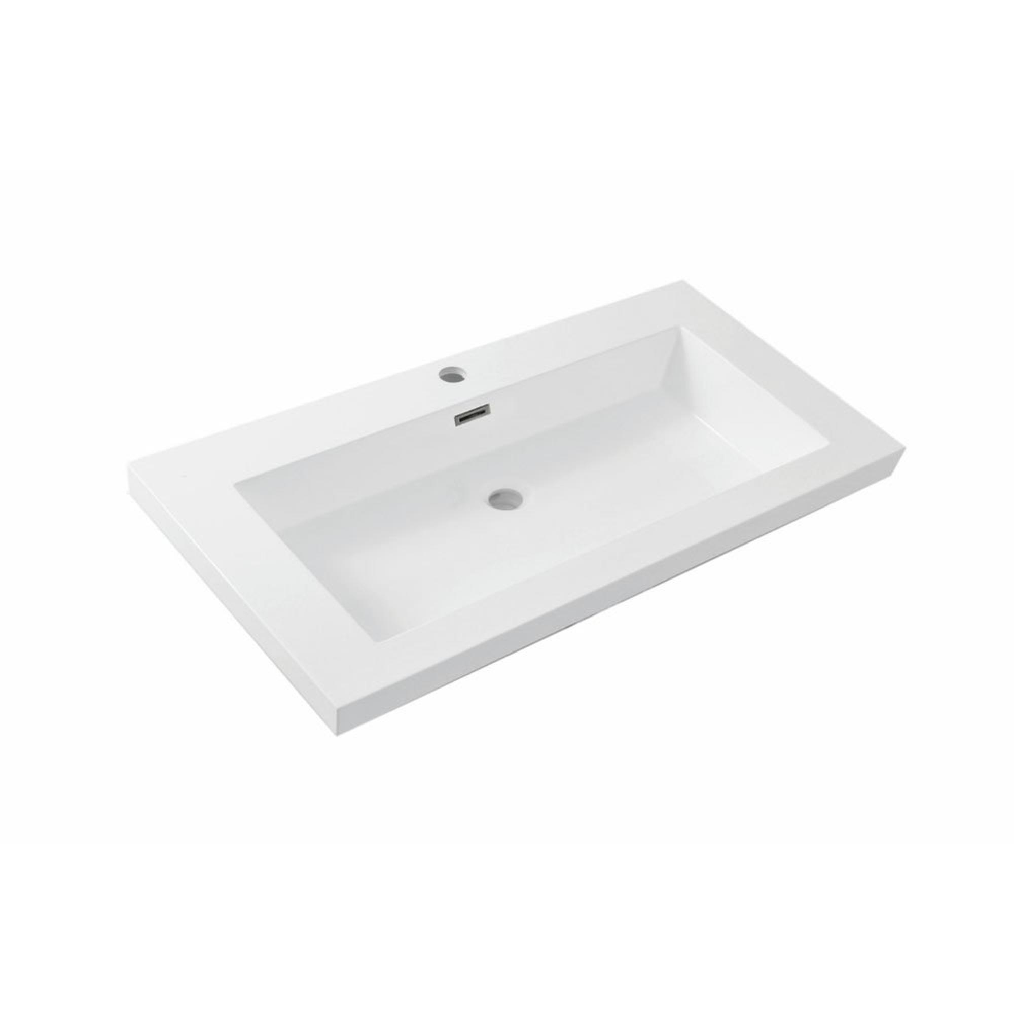 Wiesbaden Vision wastafel enkel met 1 kraangat 80x46x5,5 cm kunstmarmer glans wit