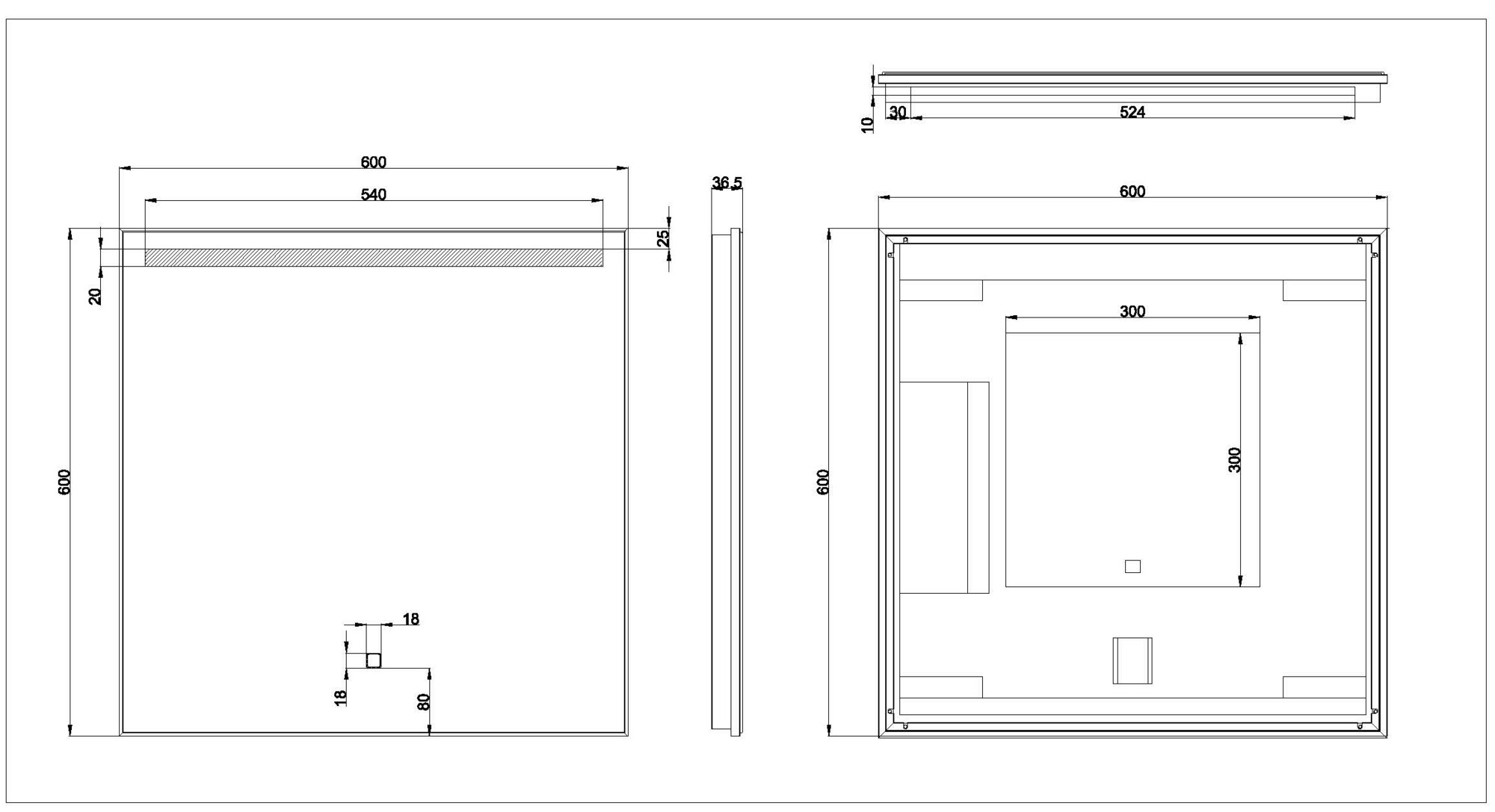 Voorzien van één spiegelverwarmings-matje van 250x350mm ter voorkoming van condensvorming
