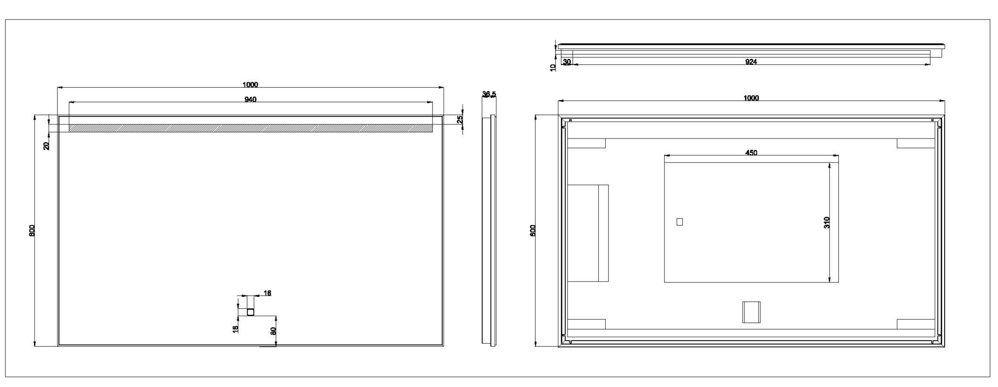 Voorzien van één spiegelverwarmings-matje van 250x350mm ter voorkoming van condensvorming