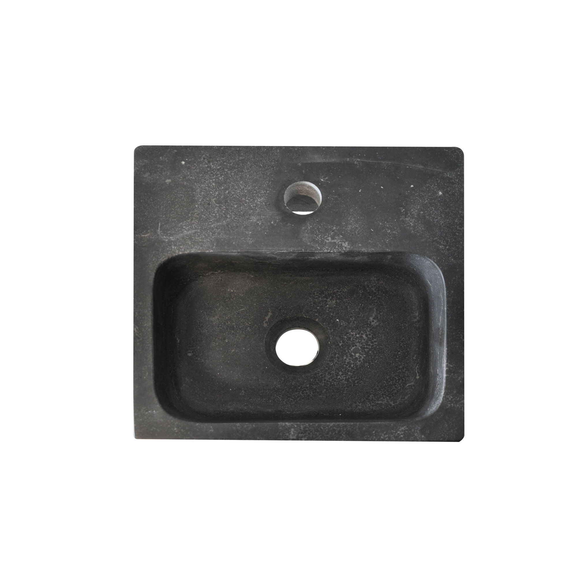 Deze wastafel heeft een licht gezoete afwerking. Hierbij wordt de wastafel lichtjes opgeschuurd maar blijft de uitstraling van de steen intact. Deze afwerking zorgt voor een mooie, lichte matglans.