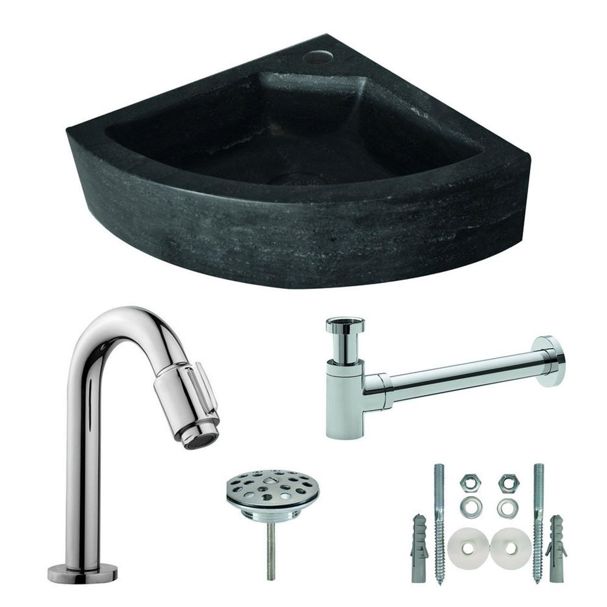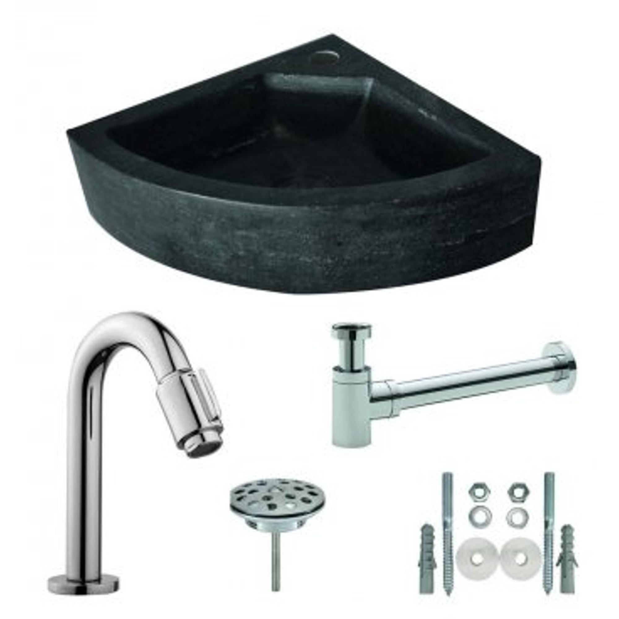 Wiesbaden One Pack Hardstenen hoekfontein 30x30x10 compl.