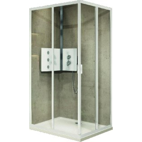 • douchecabine is vierkant met 1 schuifdeur