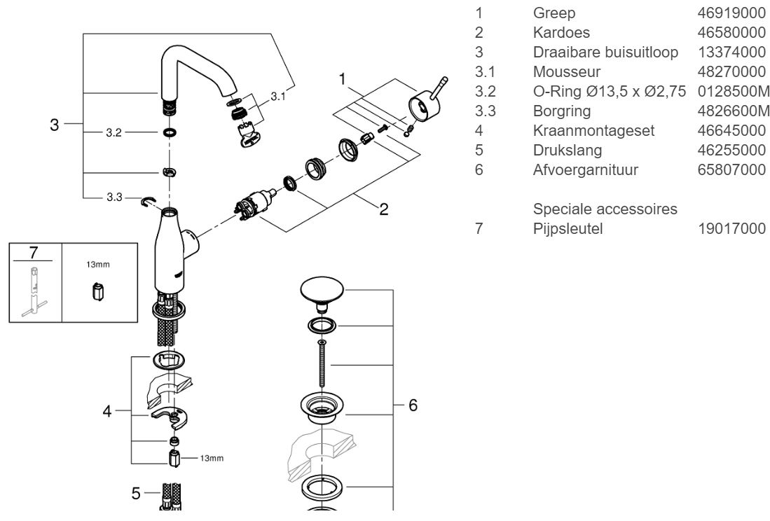 draaibare gegoten uitloop met mousseur en aanslagbegrenzer