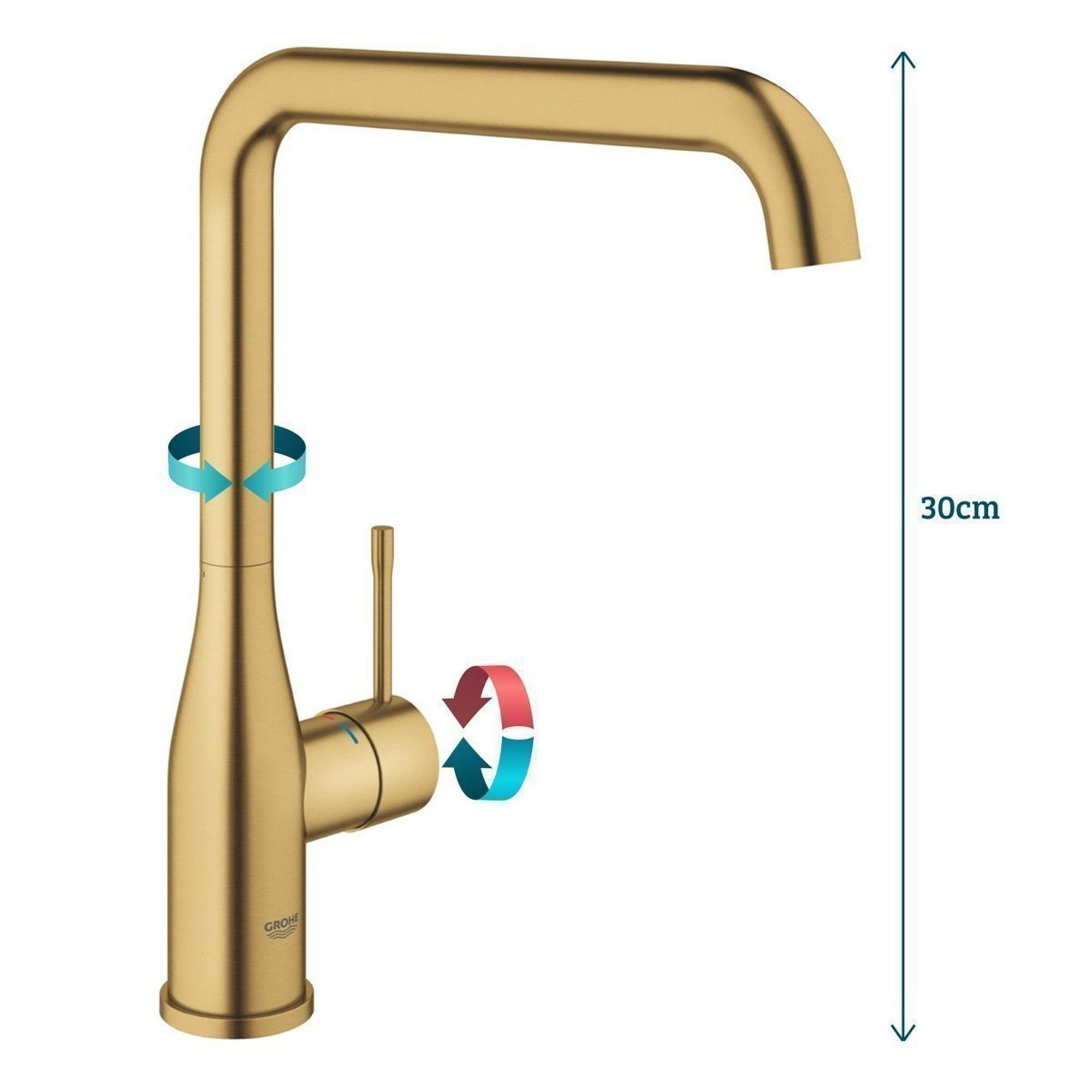 GROHE Essence keukenmengkraan – uitstekende functionaliteit, prachtig vormgegeven in Cool Sunrise geborsteld Ontdek een minimalistische stijl vol warmte met GROHE's nieuwe Essence kraan. De slanke architectonische vorm wordt versterkt door organische designelementen, ideaal voor een eigentijdse keuken. Een onderscheidende, delicate vorm verbergt de geavanceerde technologie in de nieuwe Essence kraan. De cilindrische kraan is superslank, dankzij een nieuwe, kleine cartouche. Een stevige metalen sproeikop garandeert levenslange prestaties, en je kunt gemakkelijk schakelen tussen twee straalsoorten met een toggle functie die flexibiliteit op de voorgrond zet.