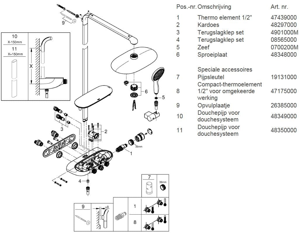 * Te bepalen bij installatie; fabrieksinstelling: GROHE PureRain