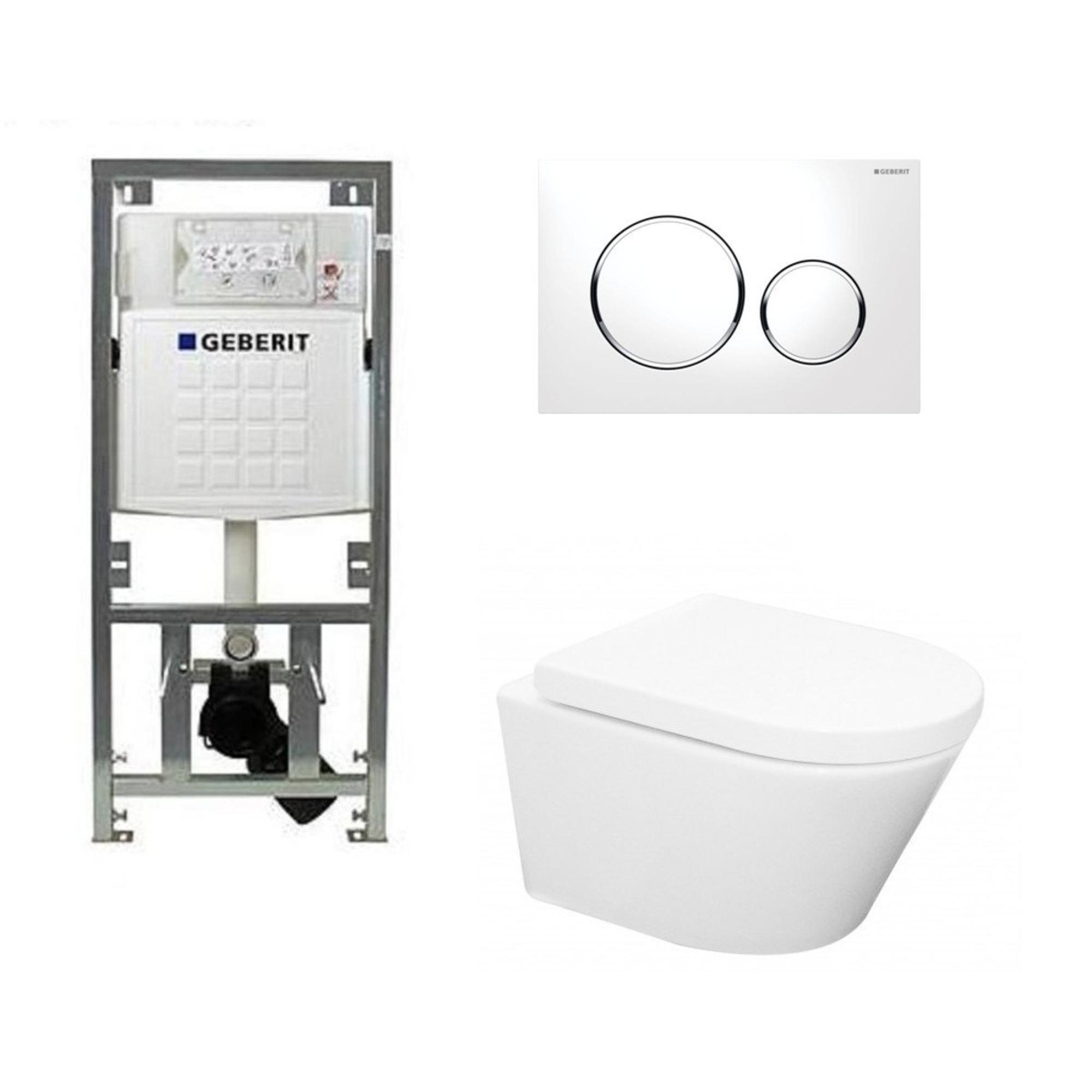Wiesbaden Vesta toiletset Rimless 52cm inclusief UP320 toiletreservoir en softclose toiletzitting met bedieningsplaat sigma20 wit SW98219