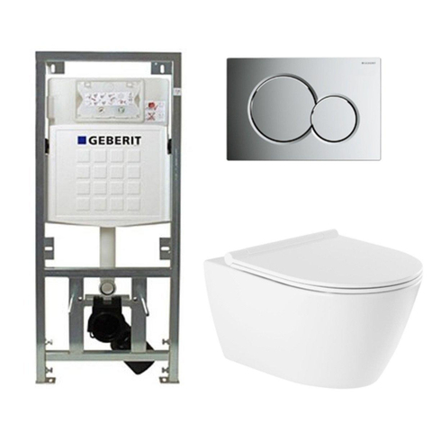 QeramiQ Salina Toiletset - rimless - diepspoel - softclose - quickrelease zitting - Geberit Sigma01 bedieningsplaat glans verchroomd - wit
