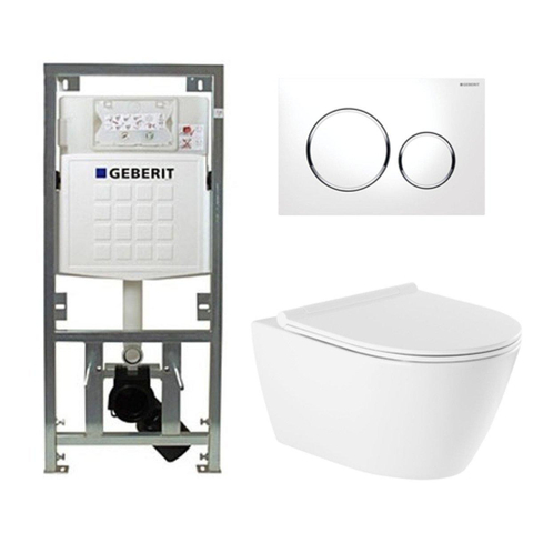 QeramiQ Salina Toiletset - rimless - diepspoel - softclose - quickrelease zitting - Geberit Sigma20 bedieningsplaat glans wit - wit