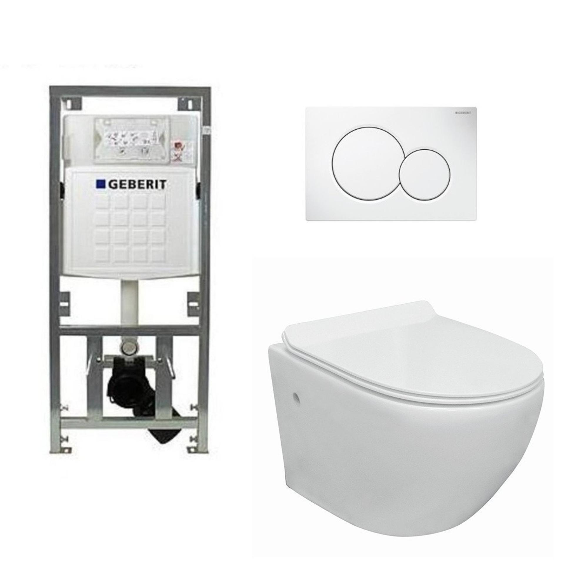 Go toiletset compact Rimless inclusief UP320 toiletreservoir met softclose en quickrelease toiletzitting met bedieningsplaat wit