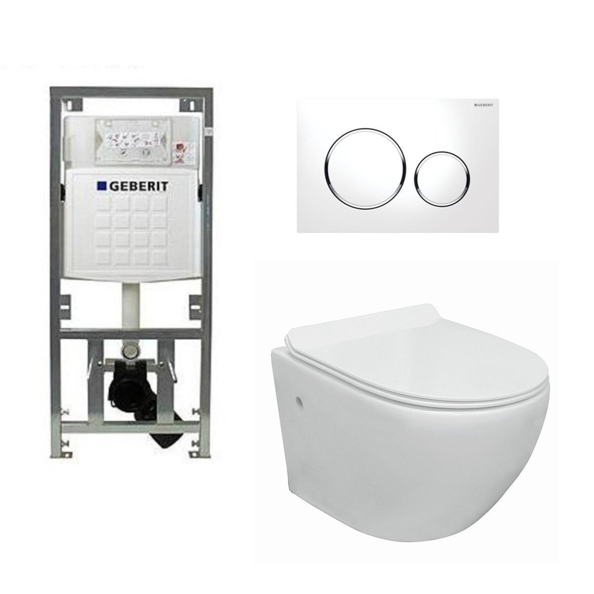 Go toiletset compact Rimless inclusief UP320 toiletreservoir met softclose en quickrelease toiletzitting met sigma20 bedieningsplaat wit