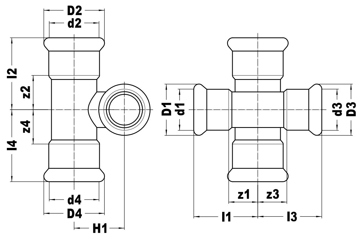 Vsh Xpress verloop passeer kruisstuk 90gr.22x15 4xpers c1434 staalverzinkt