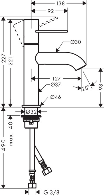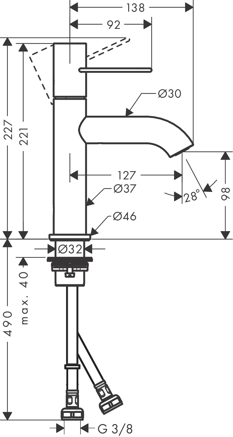 Axor Uno 3 wastafelkraan 100 beugelgreep zonder waste chroom