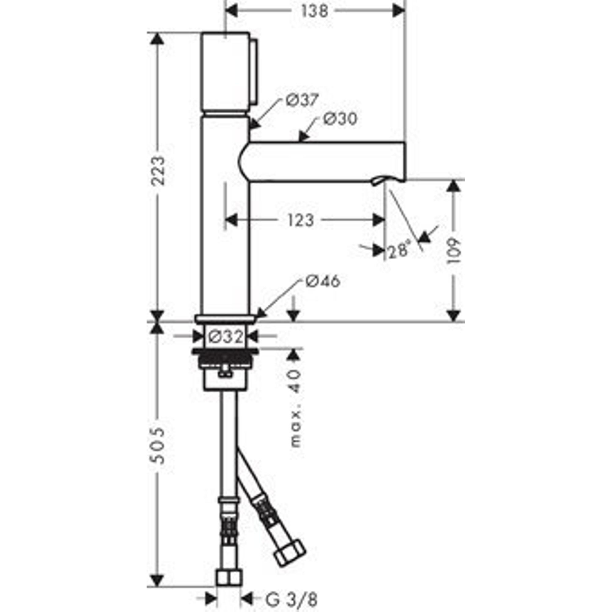 Axor Uno 3 select wastafelkraan 110 zonder waste chroom