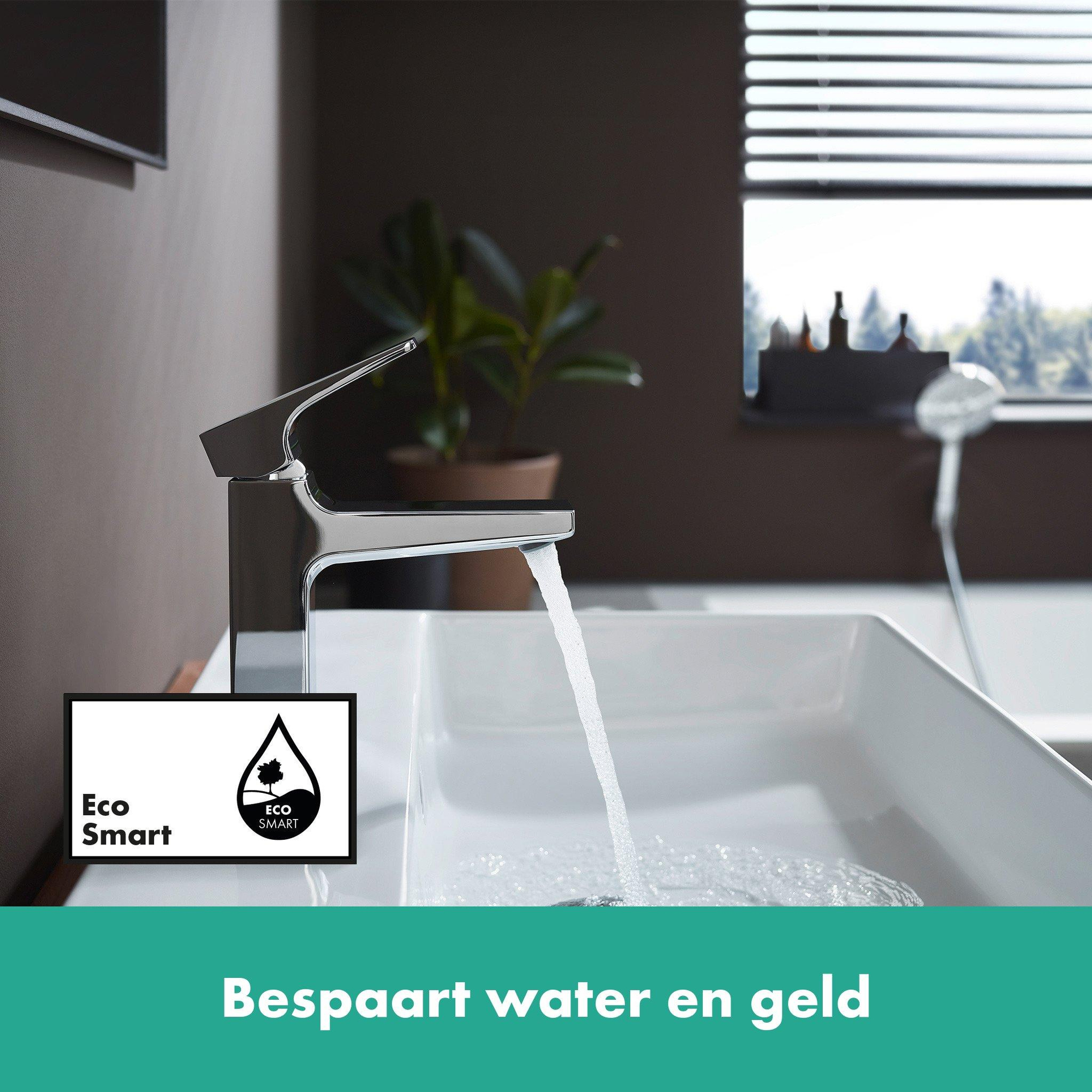 De vlakke rechte greep van deze kraan ligt comfortabel in de hand en is reageert heel gevoelig. Waterhoeveelheid en temperatuur kunnen snel worden ingesteld. Een hoogwaardig keramisch mengsysteem van hansgrohe garandeert een langdurige functionele betrouwbaarheid.