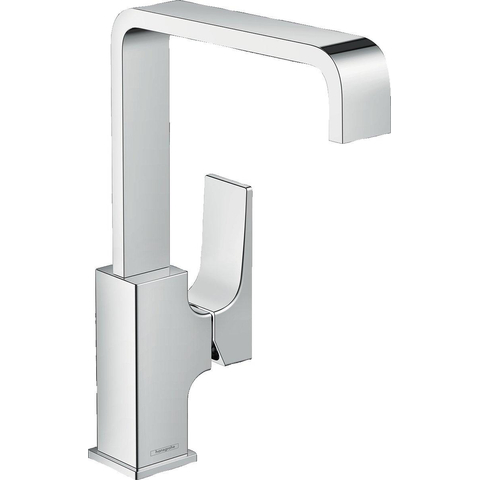 Deééngreeps wastafelmengkraan Metropol 230 met rechte greep en Push-Open afvoergarnituur inspireert met hoogwaardig design en gebruiksgemak. De ruime oppervlakken en precieze randen stralen distinctie uit en passen goed bij een moderne badkamersfeer. De grote hoogte van het armatuur en de 120 graden zwenkbare uitloop zorgen voor bijzonder veel bewegingsruimte bij de wastafel (ComfortZone 230). Dat maakt haren wassen onder de kraan of het vullen van zelfs erg grote pannen kinderspel.