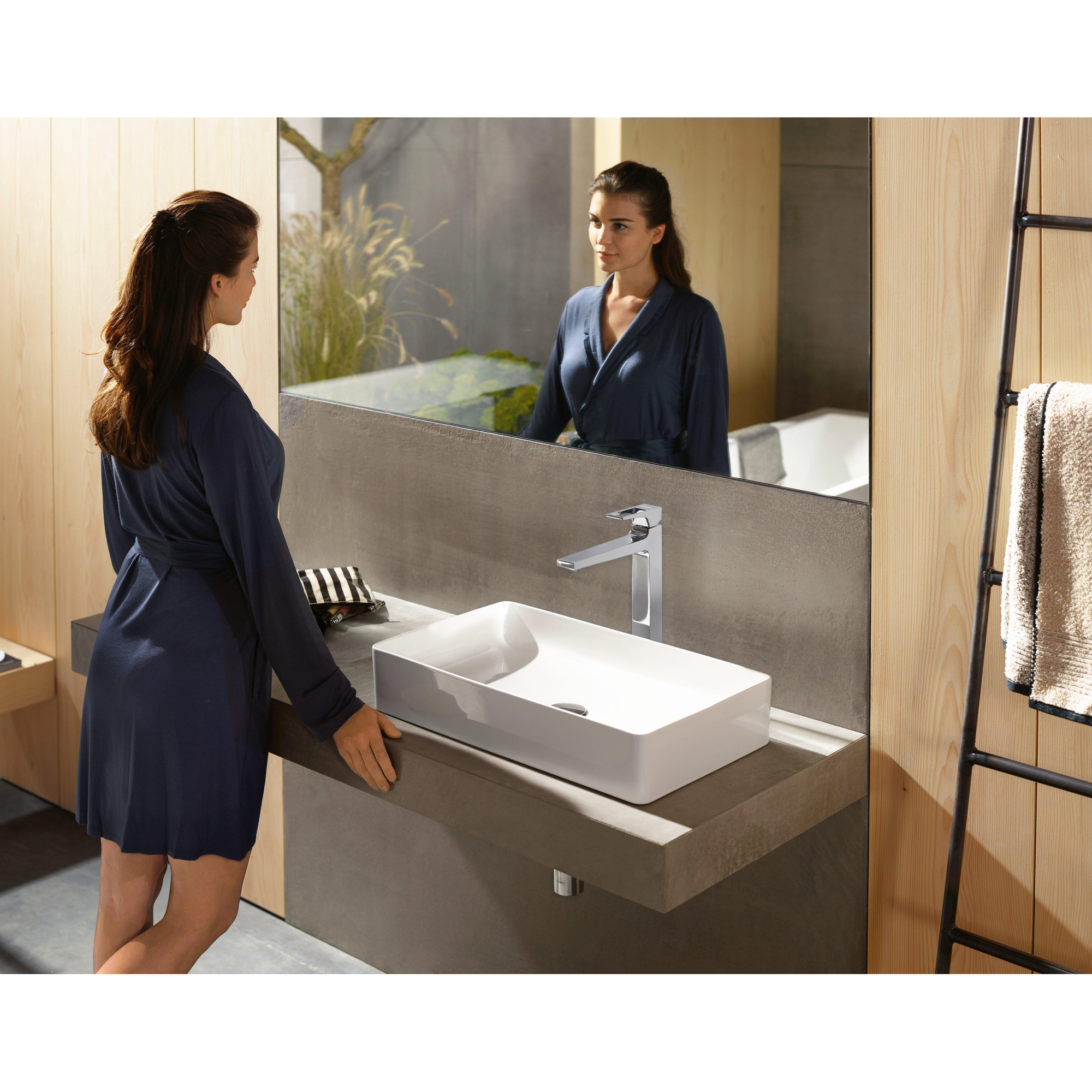 De ééngreeps wastafelmengkraan Metropol 260 met beugelgreep en PushOpen afvoergarnituur voor waskommen maakt indruk met hoogwaardig design en comfortabel gebruik. De ruime oppervlakken en precieze randen hebben een luxe uitstraling en harmoniseren goed met een modern badkamerinterieur. De grote mengkraanhoogte en de 120 graden draaibare uitloop bieden bijzonder veel vrije ruimte aan de wastafel (ComfortZone 260). Zo wordt snel haren wassen onder de kraan of het vullen van zeer grote emmers kinderspel.