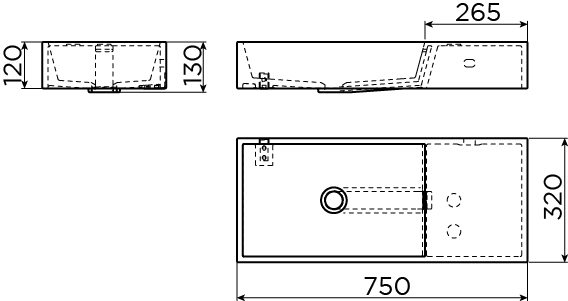 Clou Wash Me wastafel 75x32cm voorbewerkte kraangaten aluite Wit mat