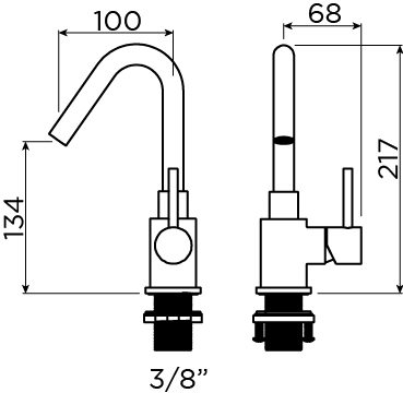 ÉéngreepsbedieningDe kraan heeft een vaste uitloop en is te bedienen met één greep waarmee u zowel de watertemperatuur als het -volume regelt. Met één handbeweging verandert u de temperatuur van koud naar warm. Door de hendel naar links, rechts, boven of beneden te bewegen regelt u de temperatuur en de hoeveelheid water.