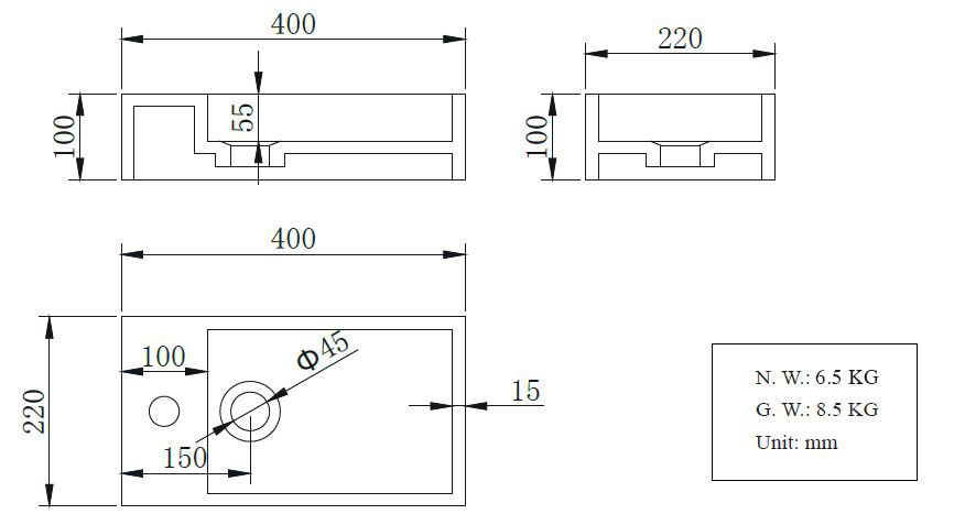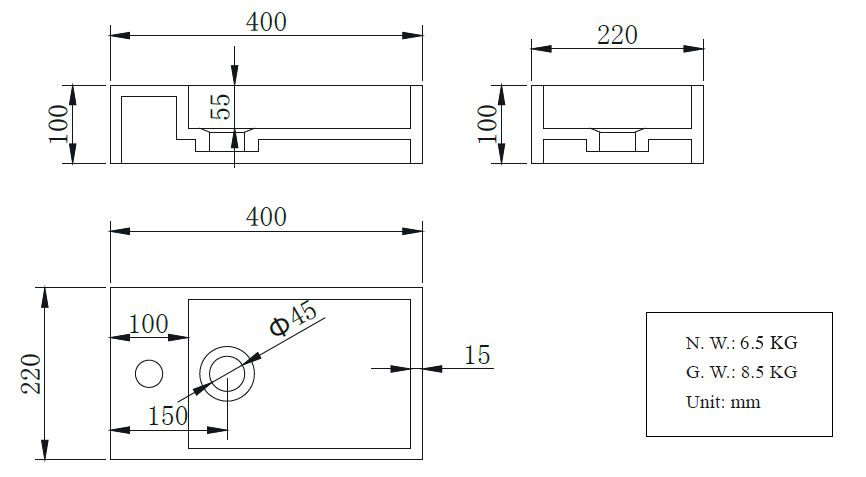 Wiesbaden Solid surface fontein links 40 x 22 x 10 cm mat wit
